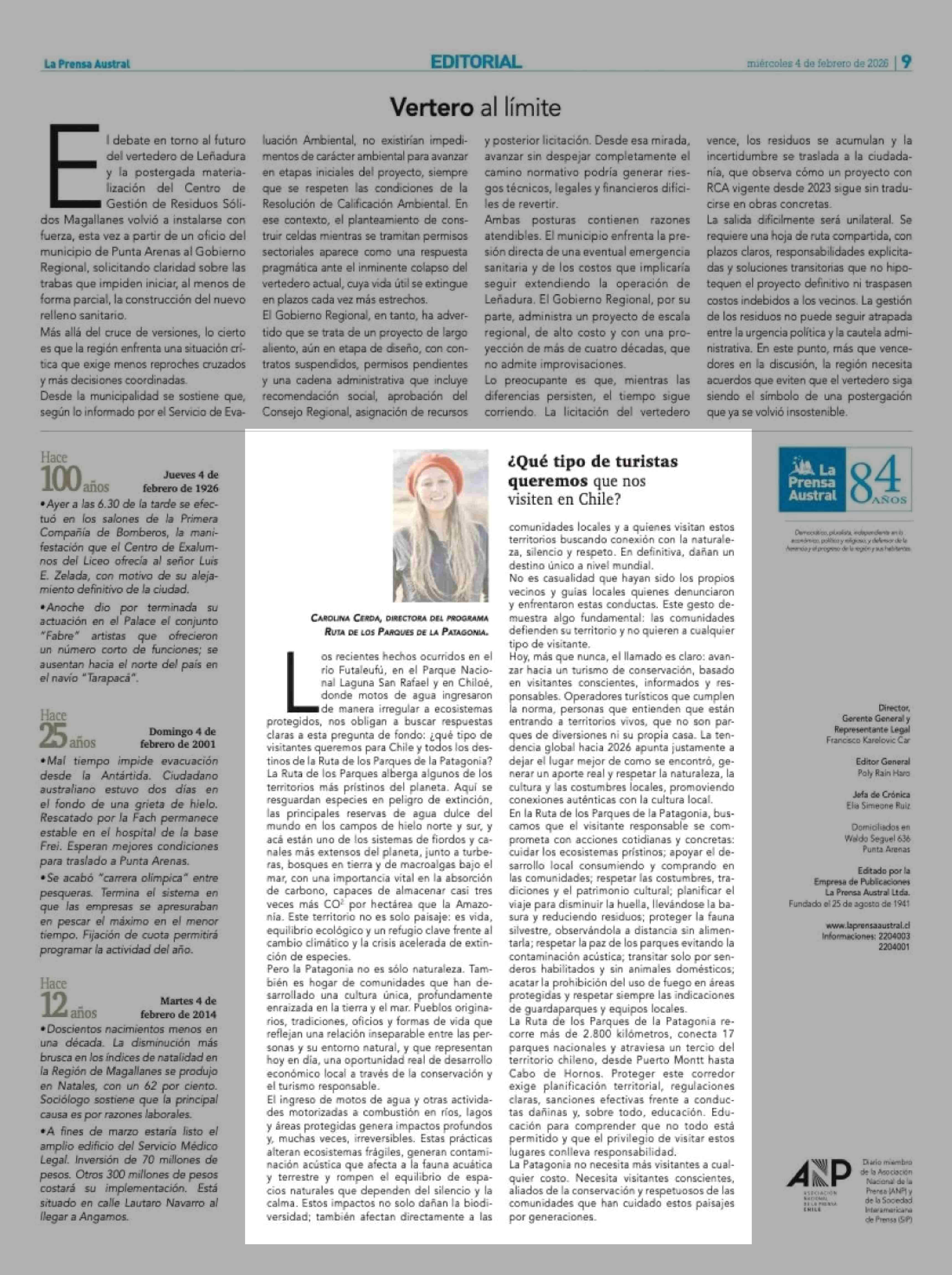 Fecha: 04-02-2026 Sector: Noticia general Región: Región de Magallanes y de la Antártica Chilena
