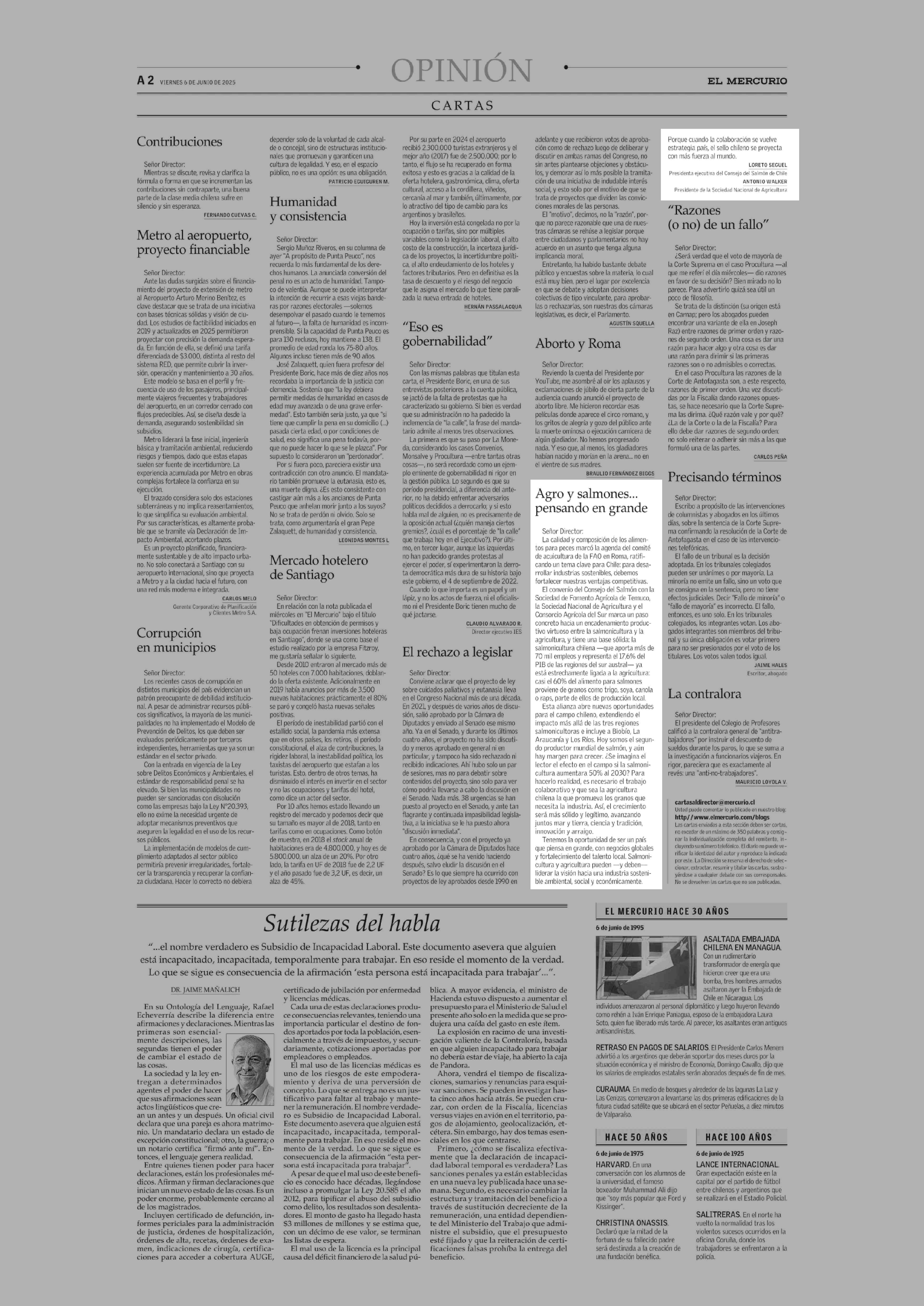 CARTAS: Agro y salmones... pensando en grande 06-06-2025 El Mercurio |