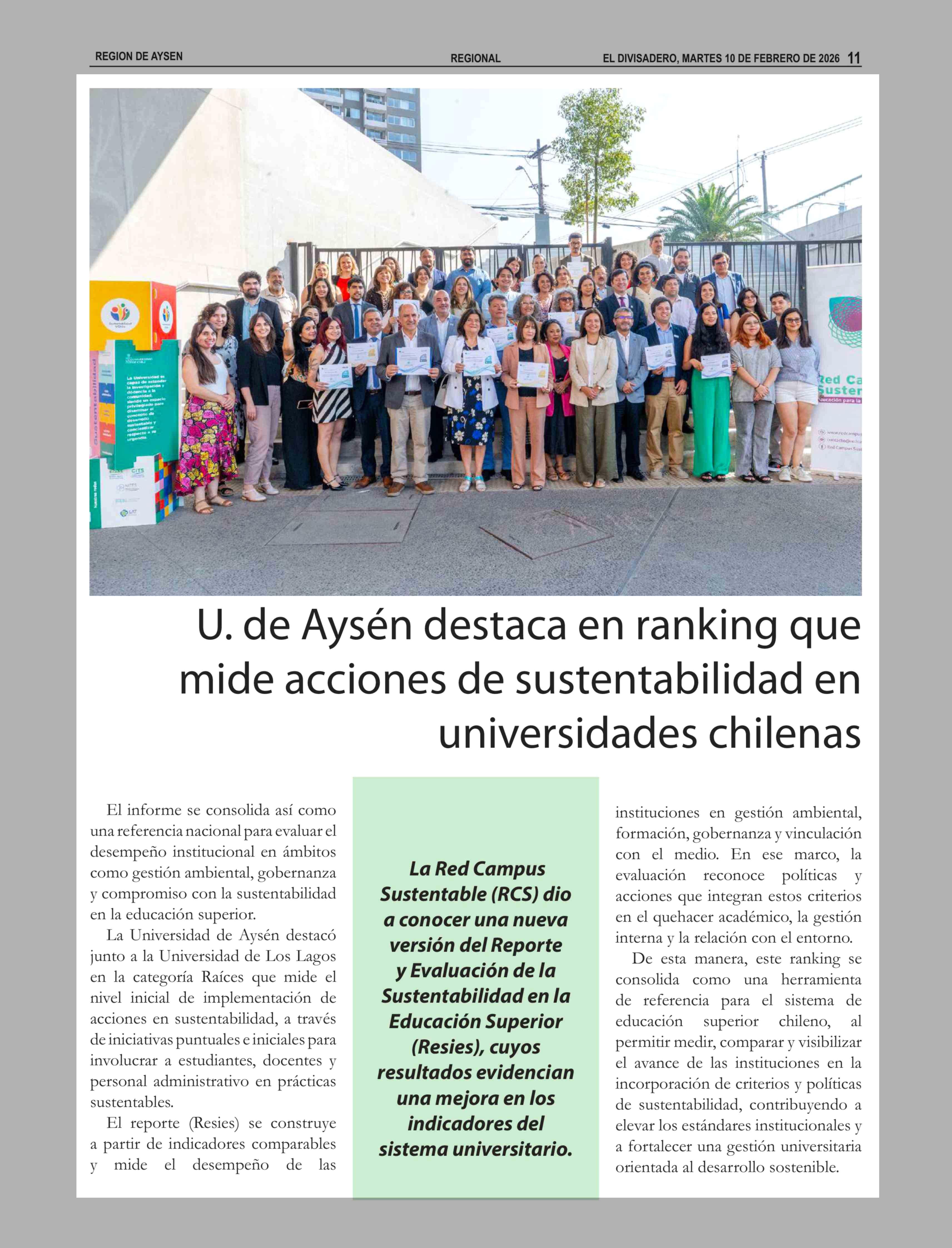 Título: U. de Aysén destaca en ranking que mide acciones de sustentabilidad en universidades chilenas