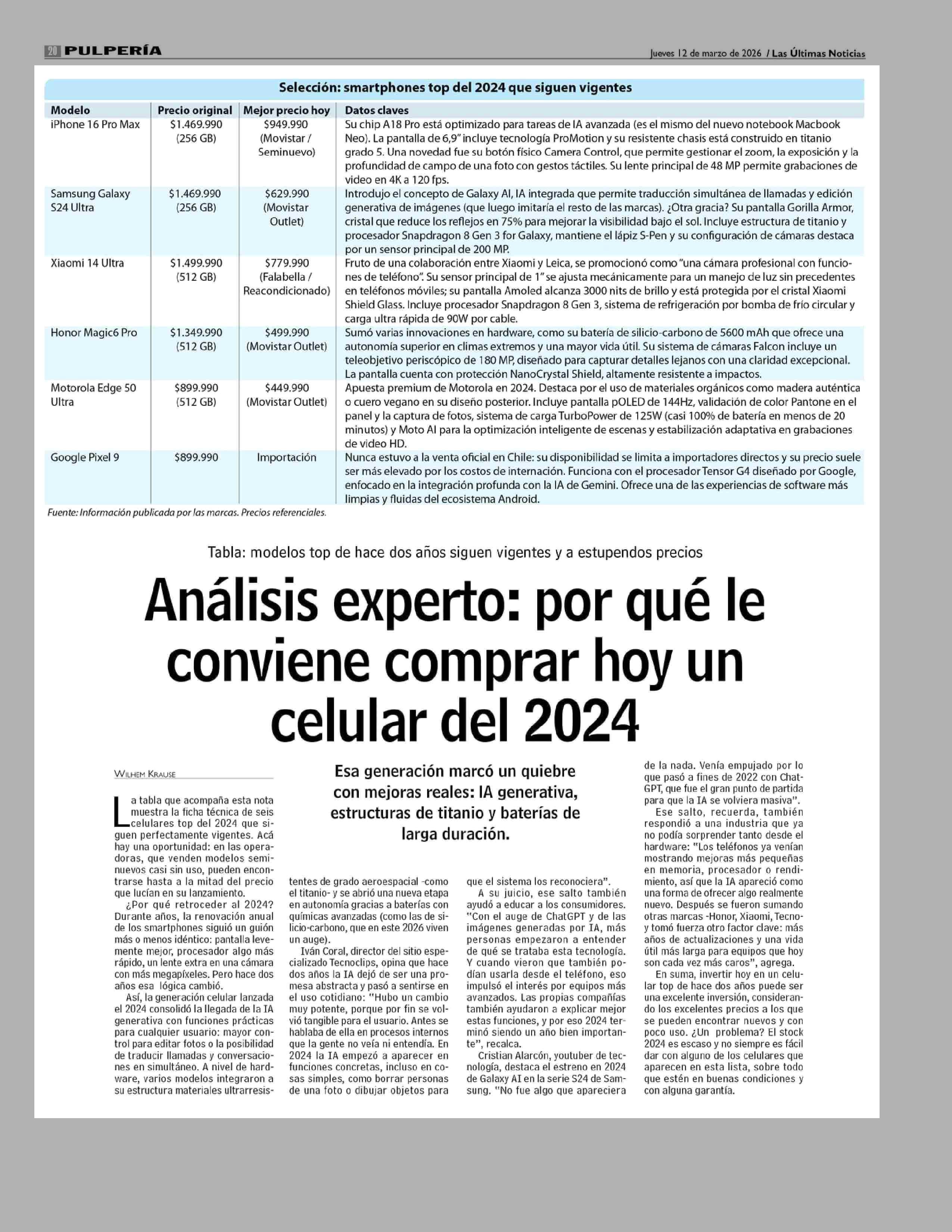 Análisis experto: por qué le conviene comprar hoy un celular del 2024 12-03-2026 Las Últimas Noticias |