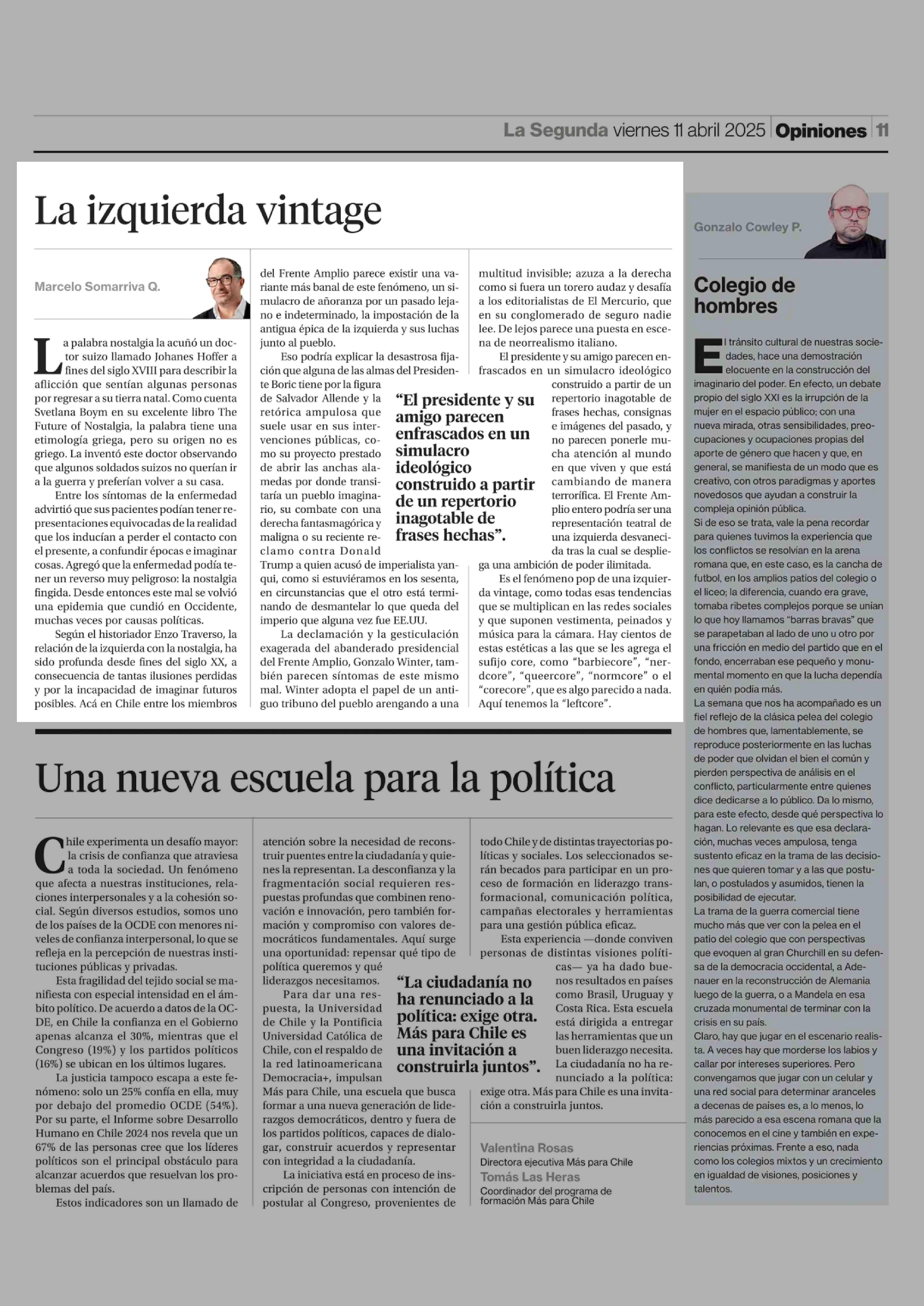 COLUMNAS DE OPINIÓN: La izquierda vintage 11-04-2025 La Segunda |