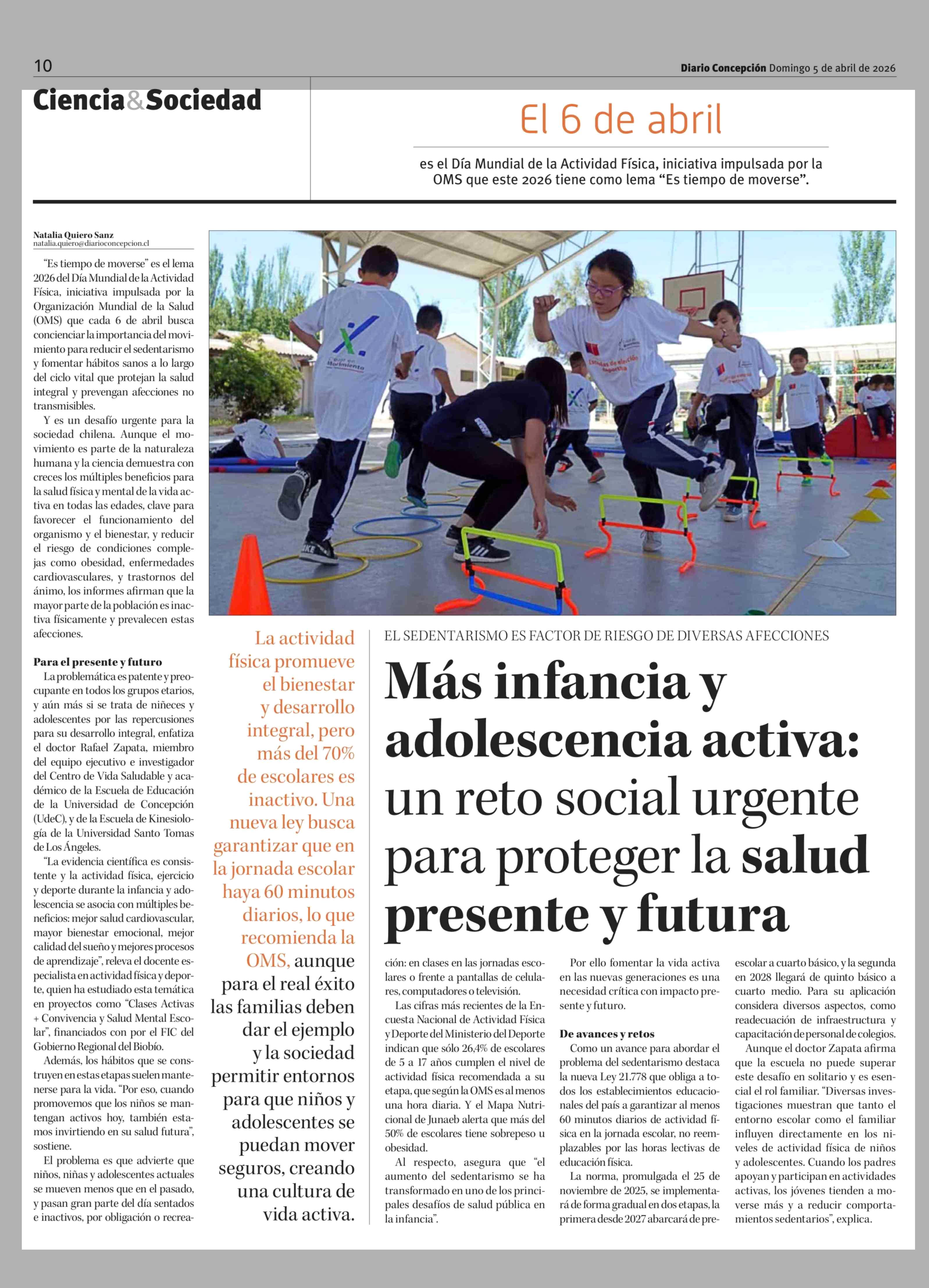 Más infancia y adolescencia activa: un reto social urgente para proteger la salud presente y futura 05-04-2026 Diario Concepción |
