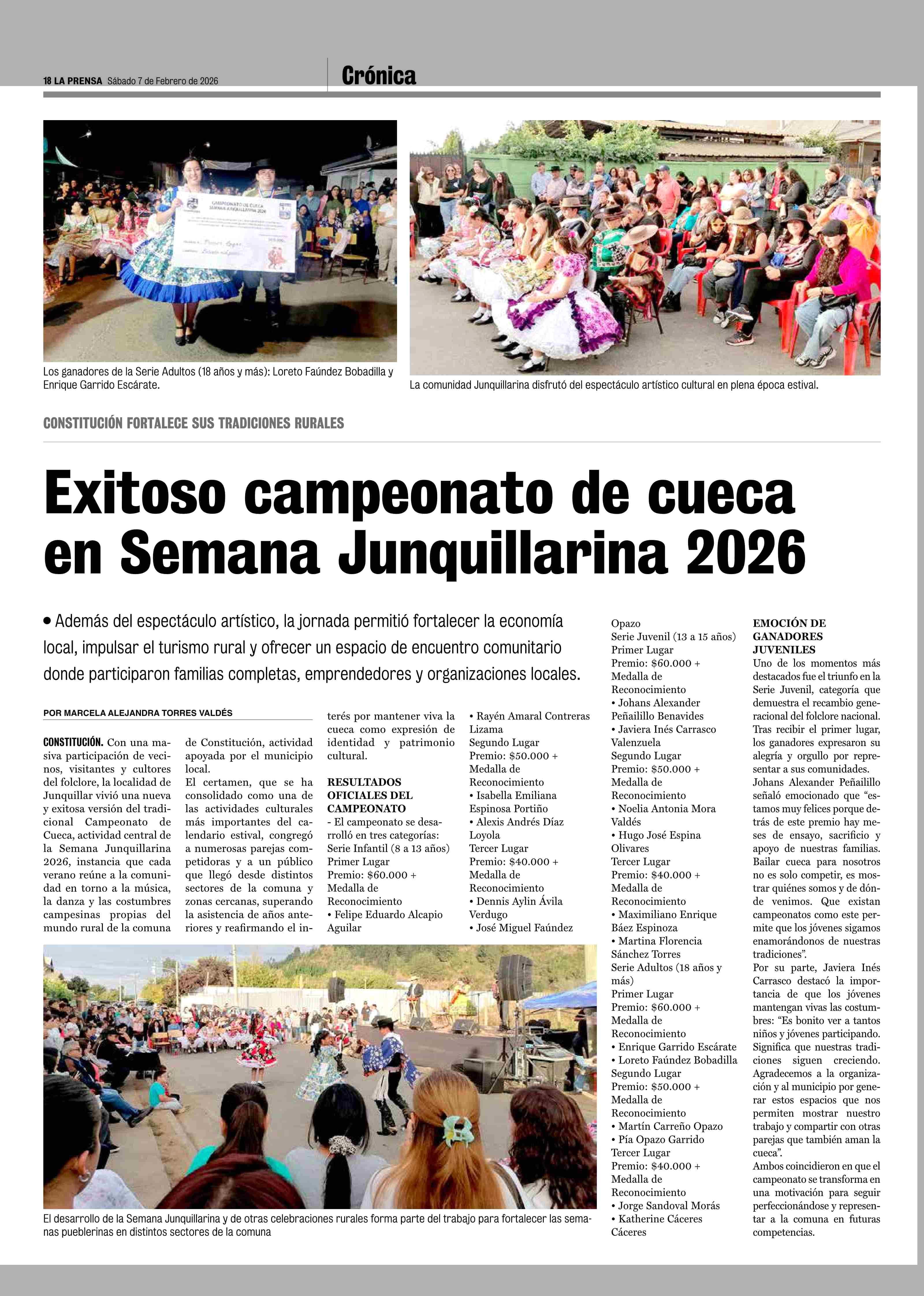 Exitoso campeonato de cueca en Semana Junquillarina 2026 07-02-2026 La Prensa de Curicó |