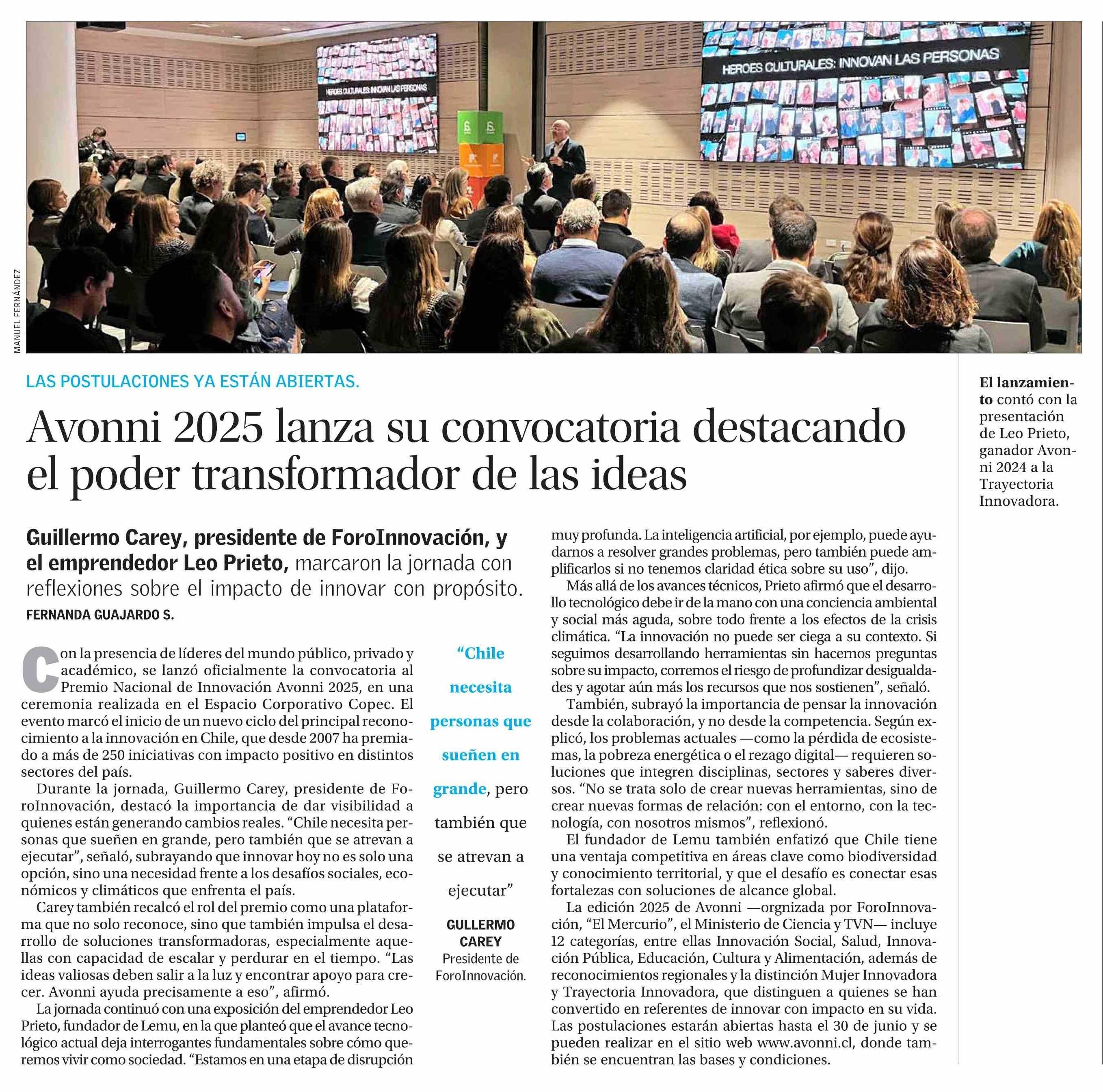 Avonni 2025 lanza su convocatoria destacando el poder transformador de las ideas 10-04-2025 El Mercurio |