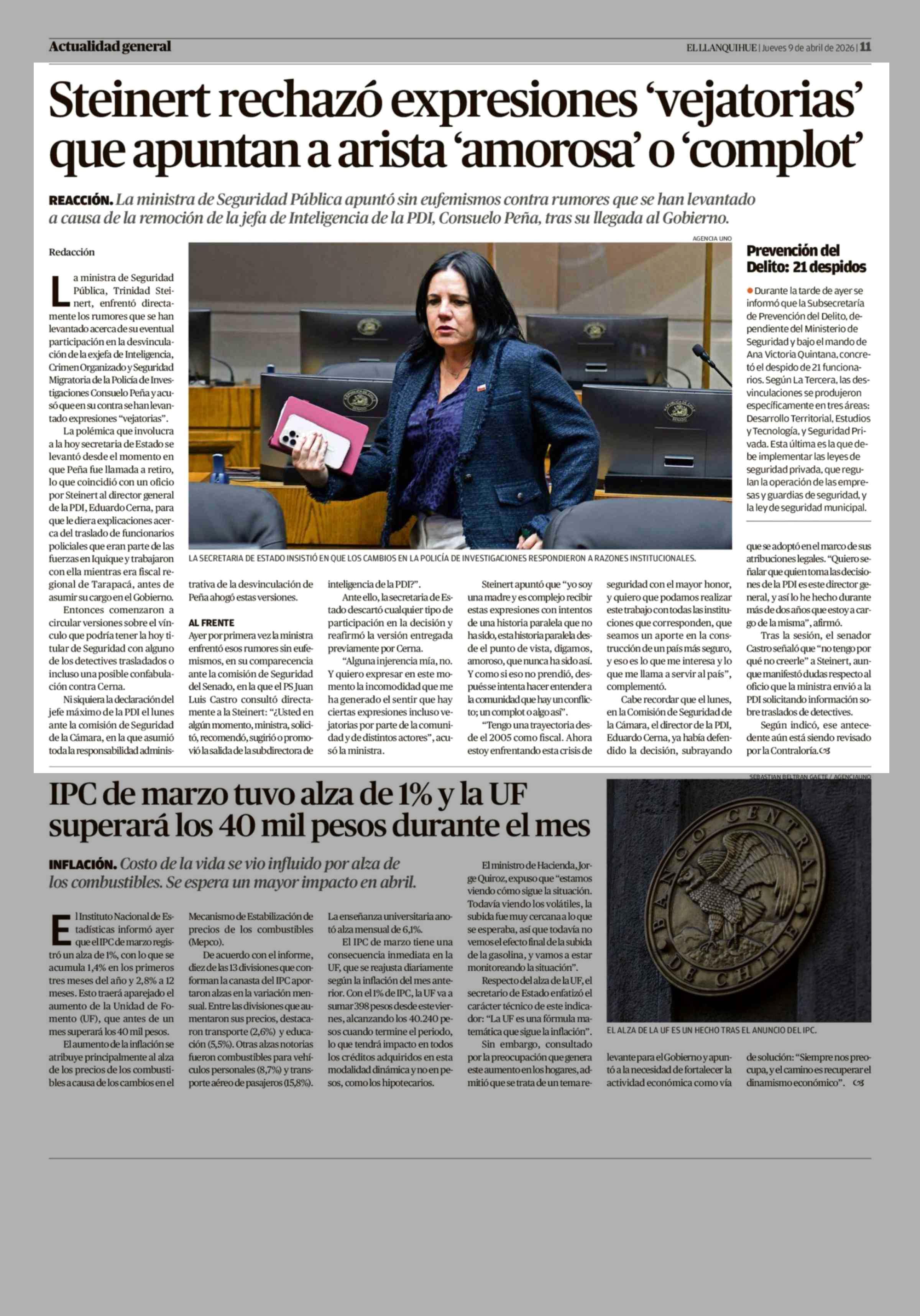 Título: Steinert rechazó expresiones 'vejatorias' que apuntan a arista 'amorosa' o 'complot'