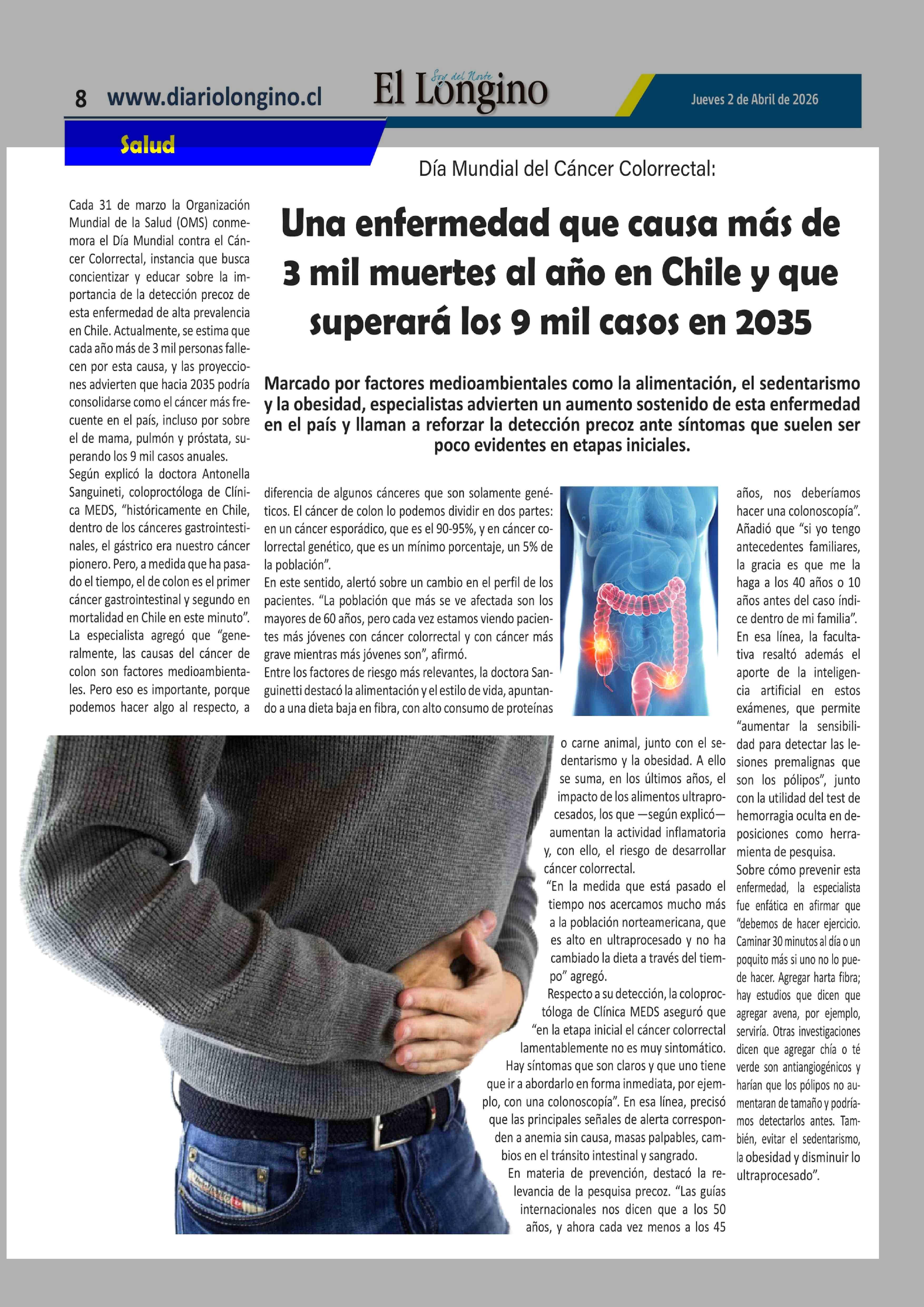 Una enfermedad que causa más de 3 mil muertes al año en Chile y que superará los 9 mil casos en 2035 02-04-2026 El Longino |