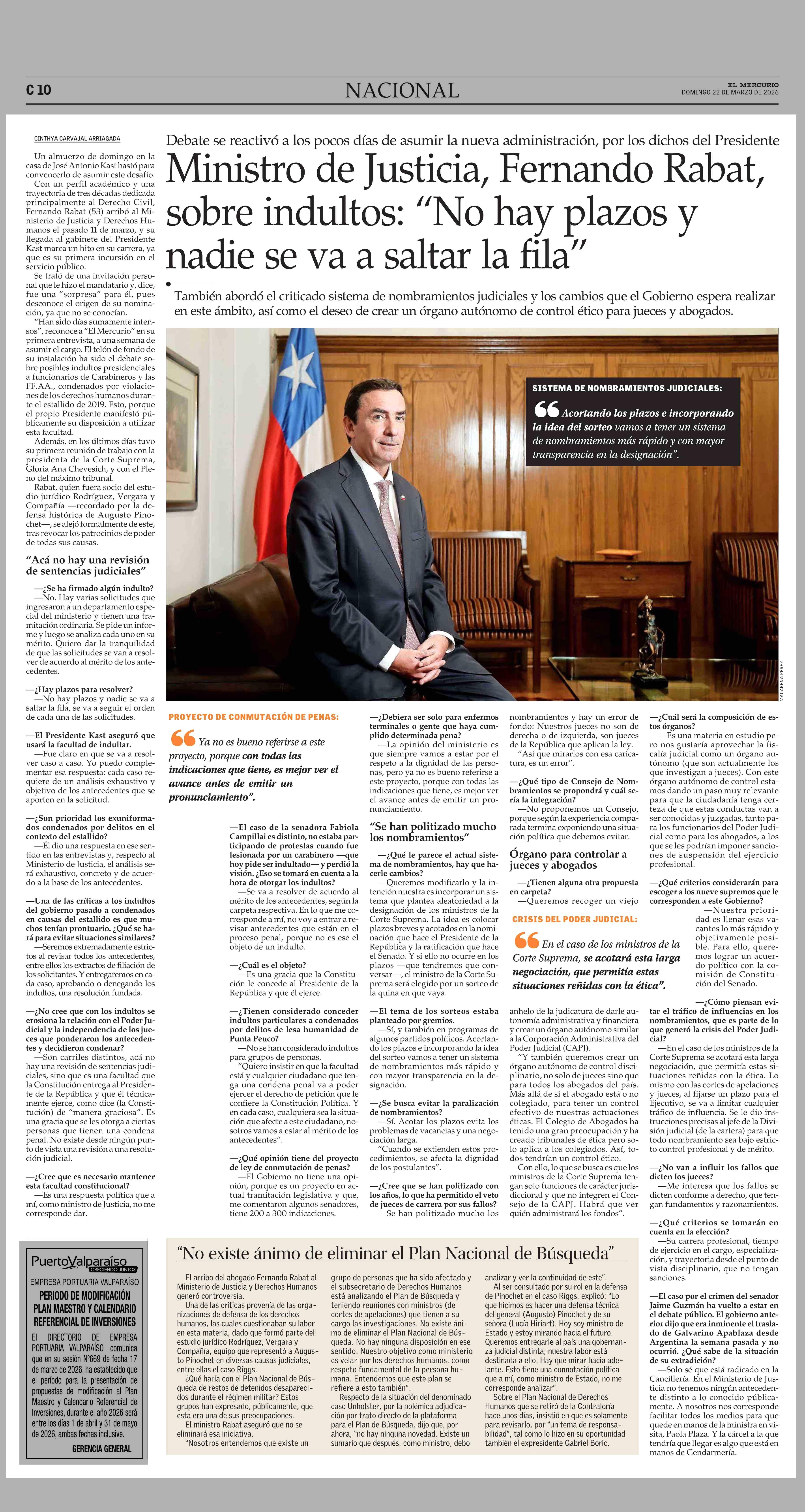 Ministro de Justicia, Fernando Rabat, sobre indultos: "No hay plazos y nadie se va a saltar la fila" 22-03-2026 El Mercurio |