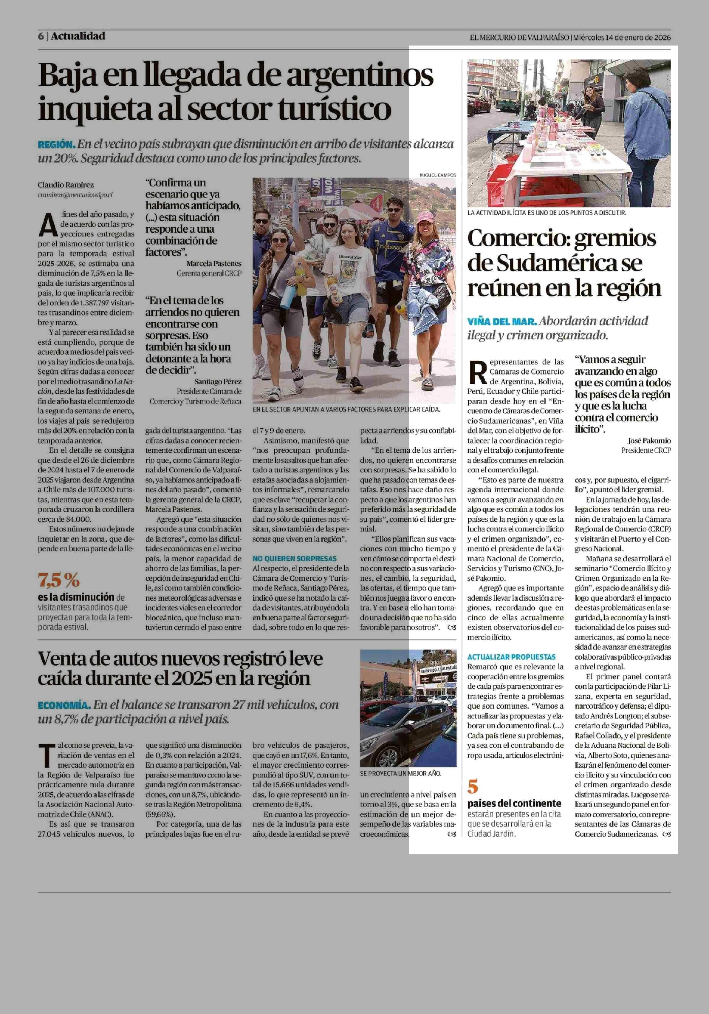 Comercio: gremios de Sudamérica se reúnen en la región 14-01-2026 El Mercurio de Valparaíso |