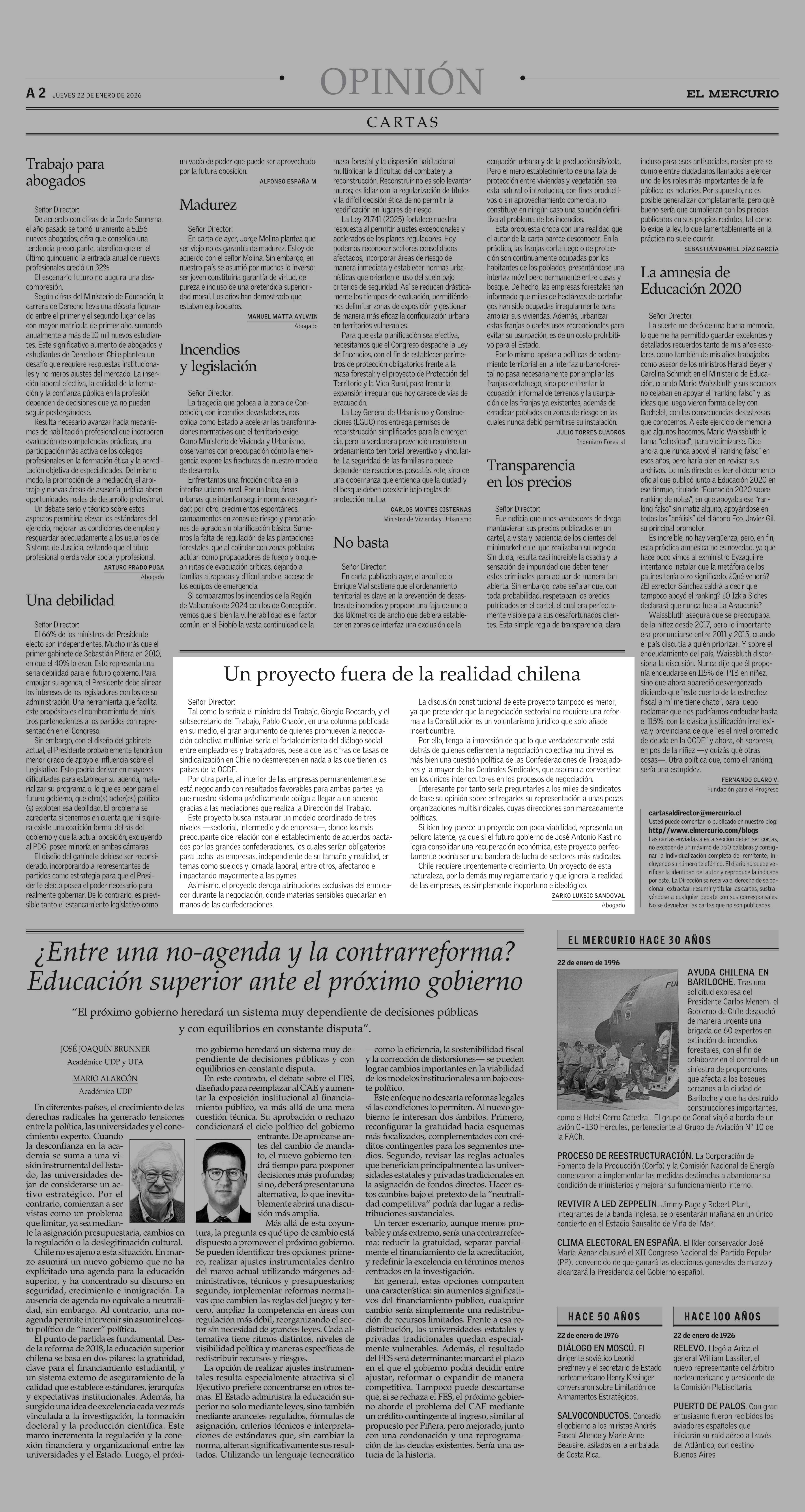 CARTAS: Un proyecto fuera de la realidad chilena 22-01-2026 El Mercurio |