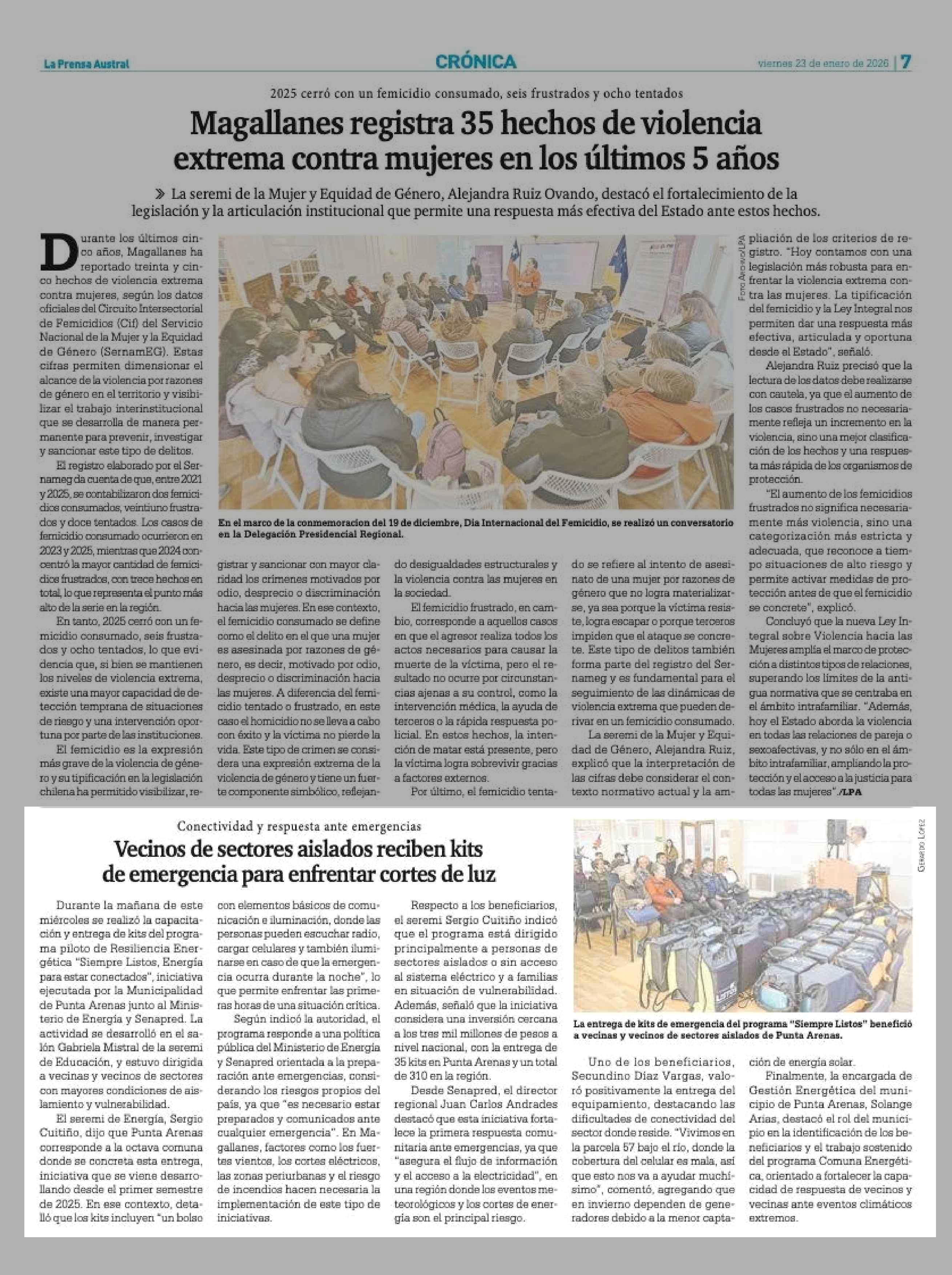 | Fecha: | 23-01-2026 | Sector: | Noticia general | Región: | Región de Magallanes y de la Antártica Chilena |