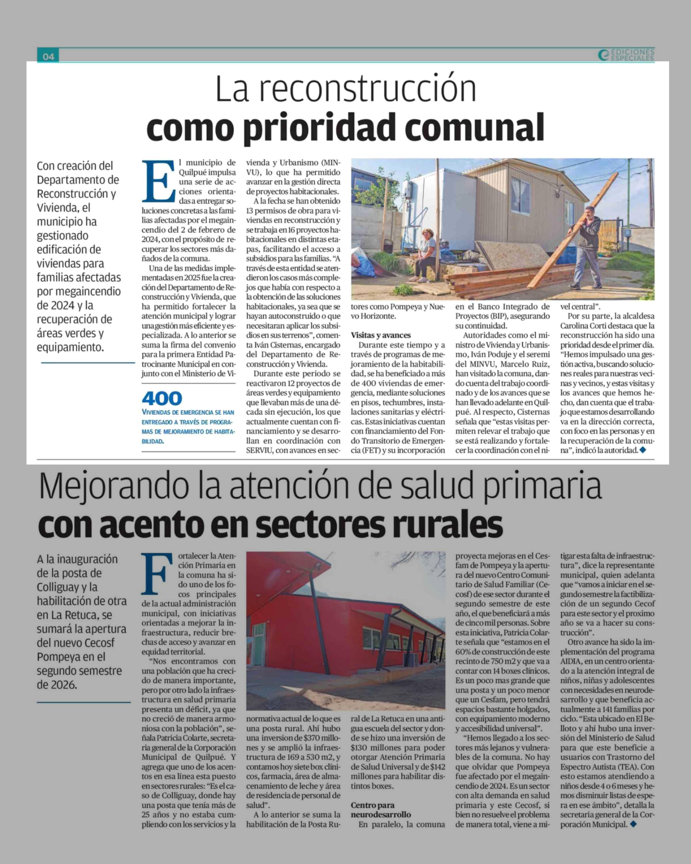 La reconstrucción como prioridad comunal 26-04-2026 El Mercurio de Valparaíso |
