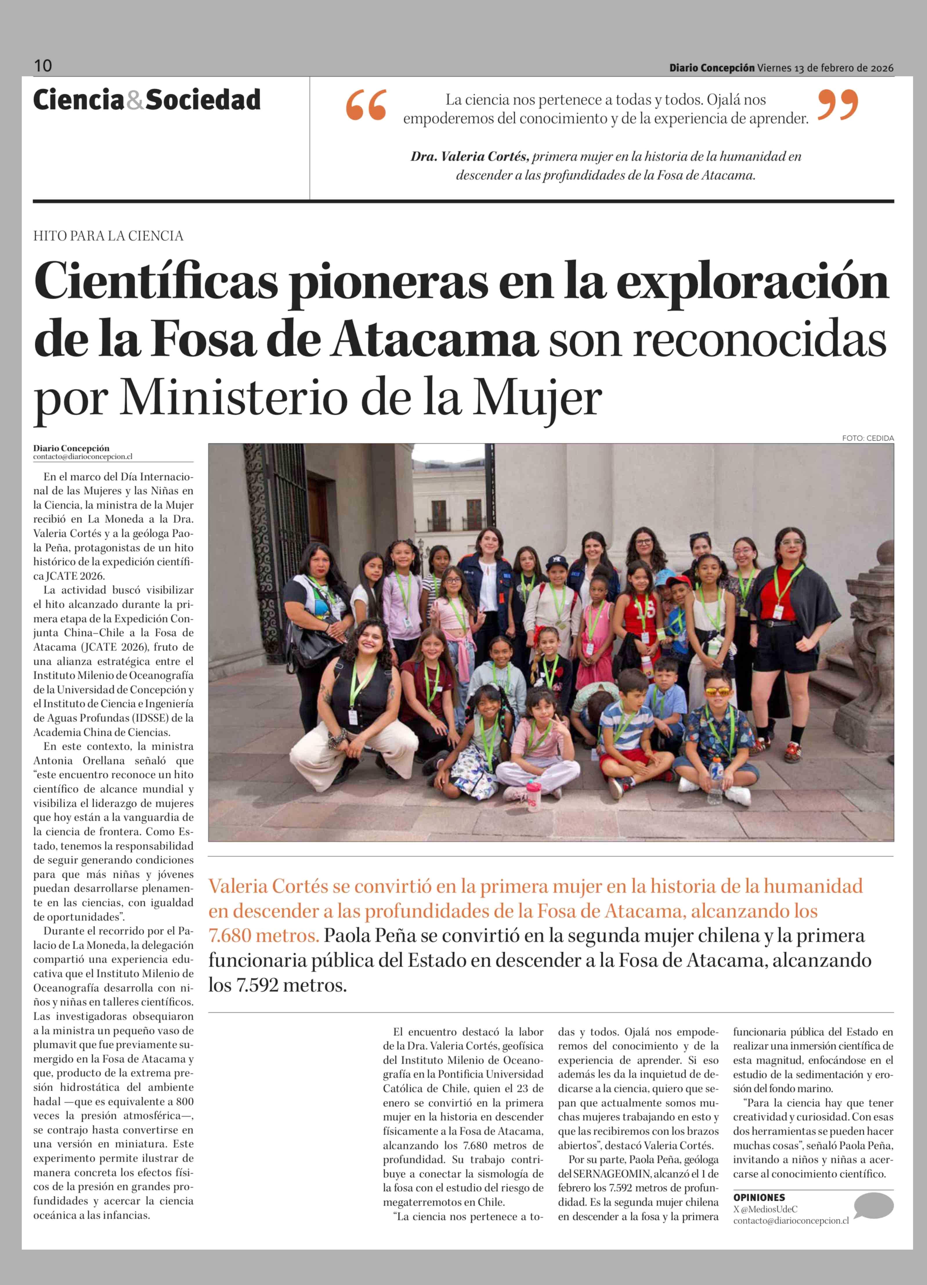 Título: Científicas pioneras en la exploración de la Fosa de Atacama son reconocidas por Ministerio de la Mujer