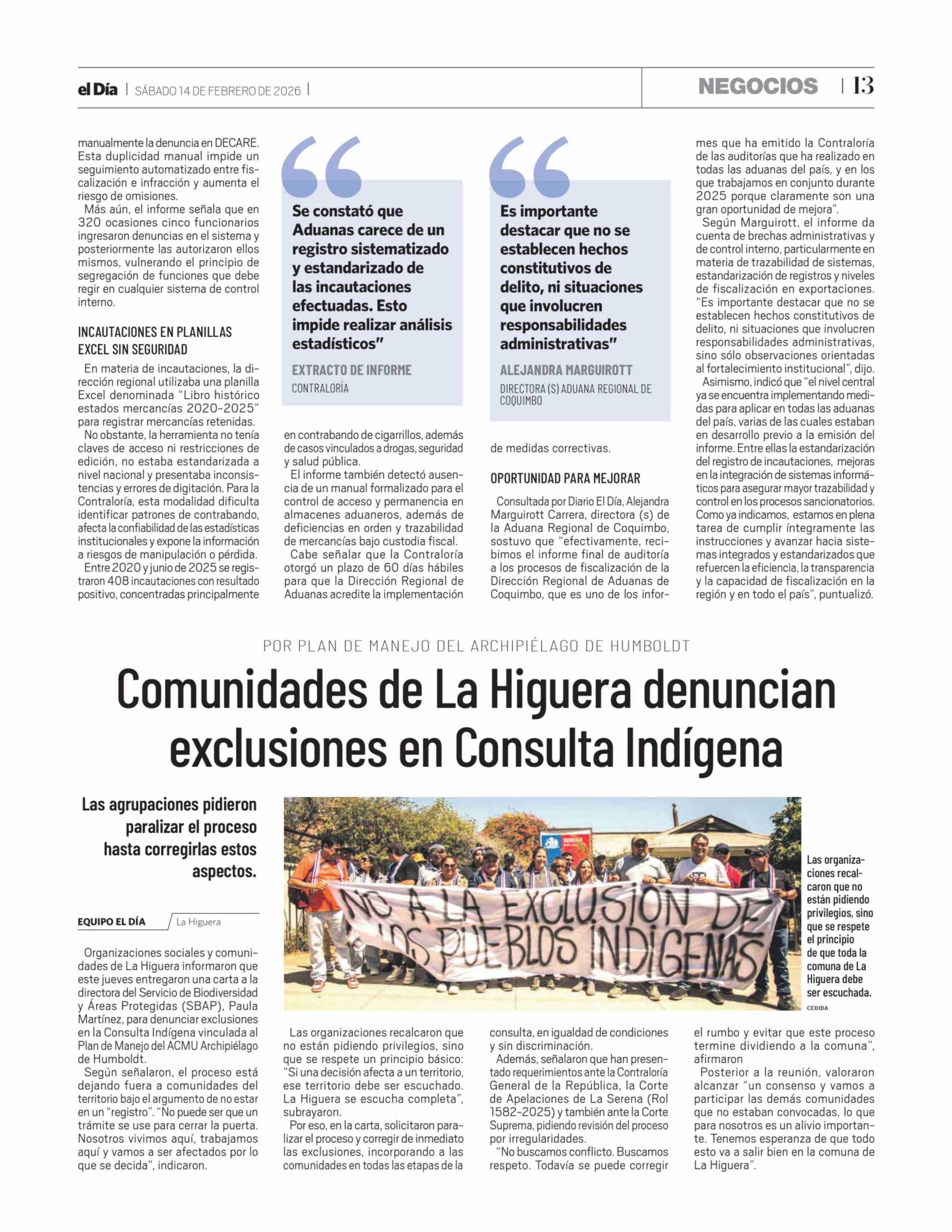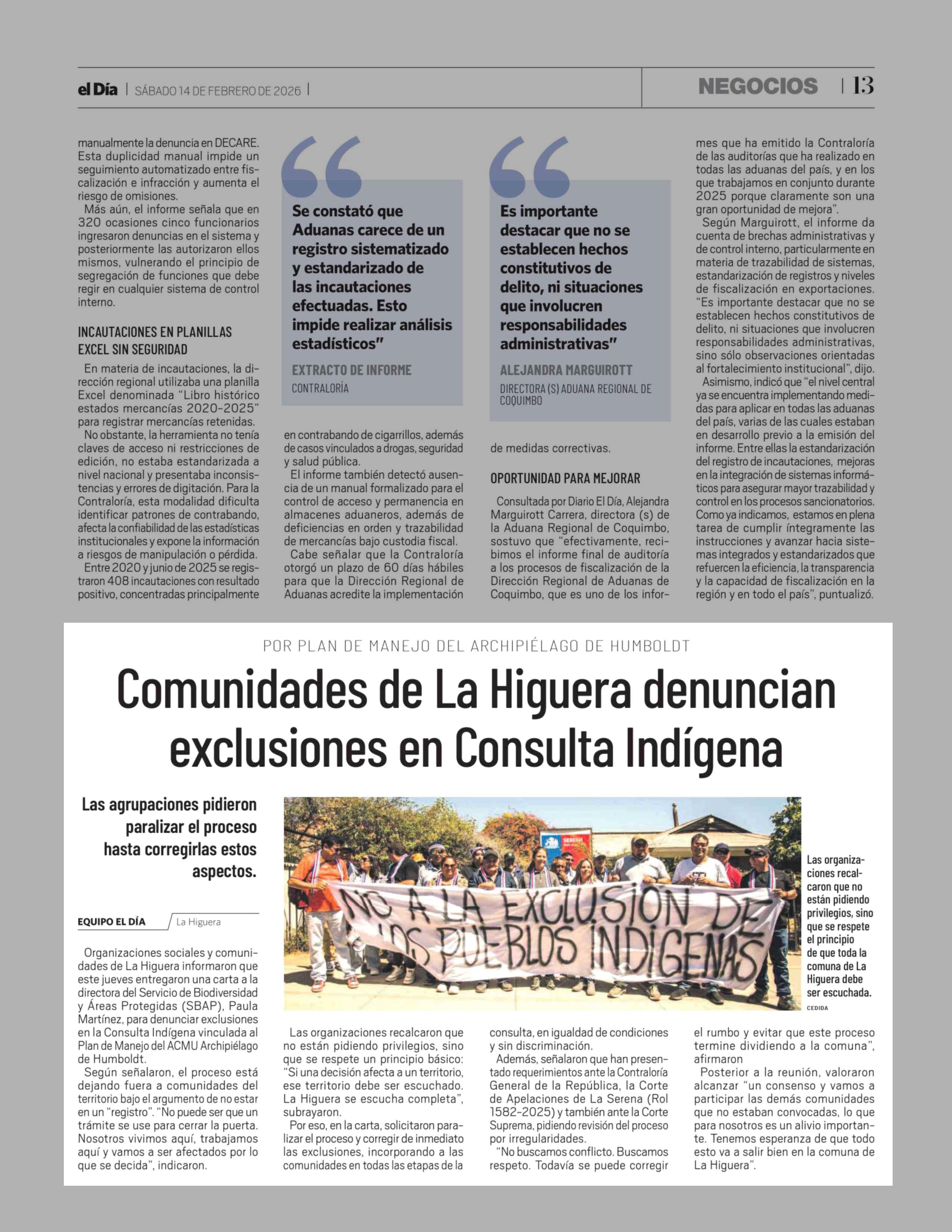 Comunidades de La Higuera denuncian exclusiones en Consulta Indígena 14-02-2026 El Día |