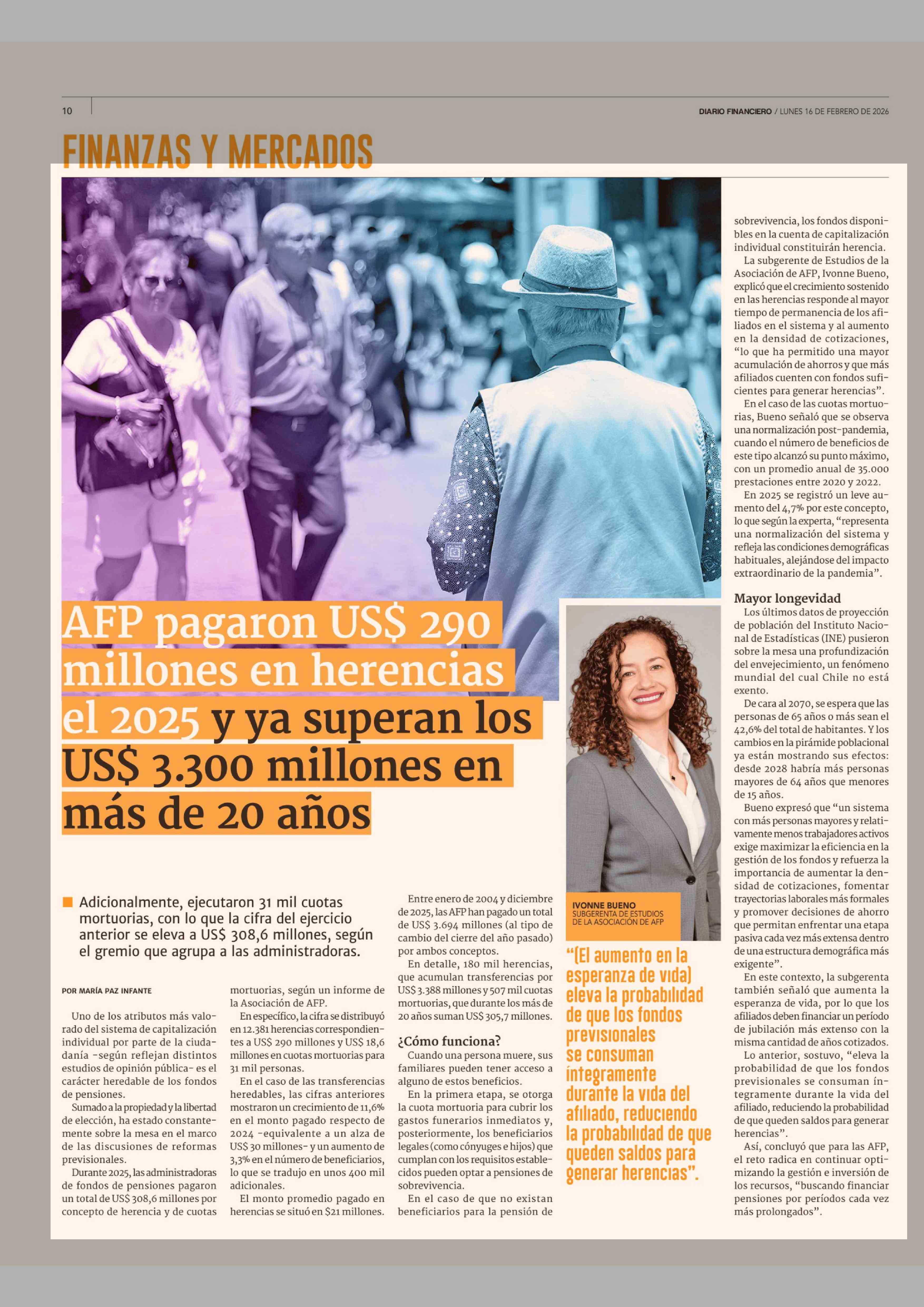Título: AFP pagaron US$ 290 millones en herencias el 2025 y ya superan los US$ 3.300 millones en más de 20 años