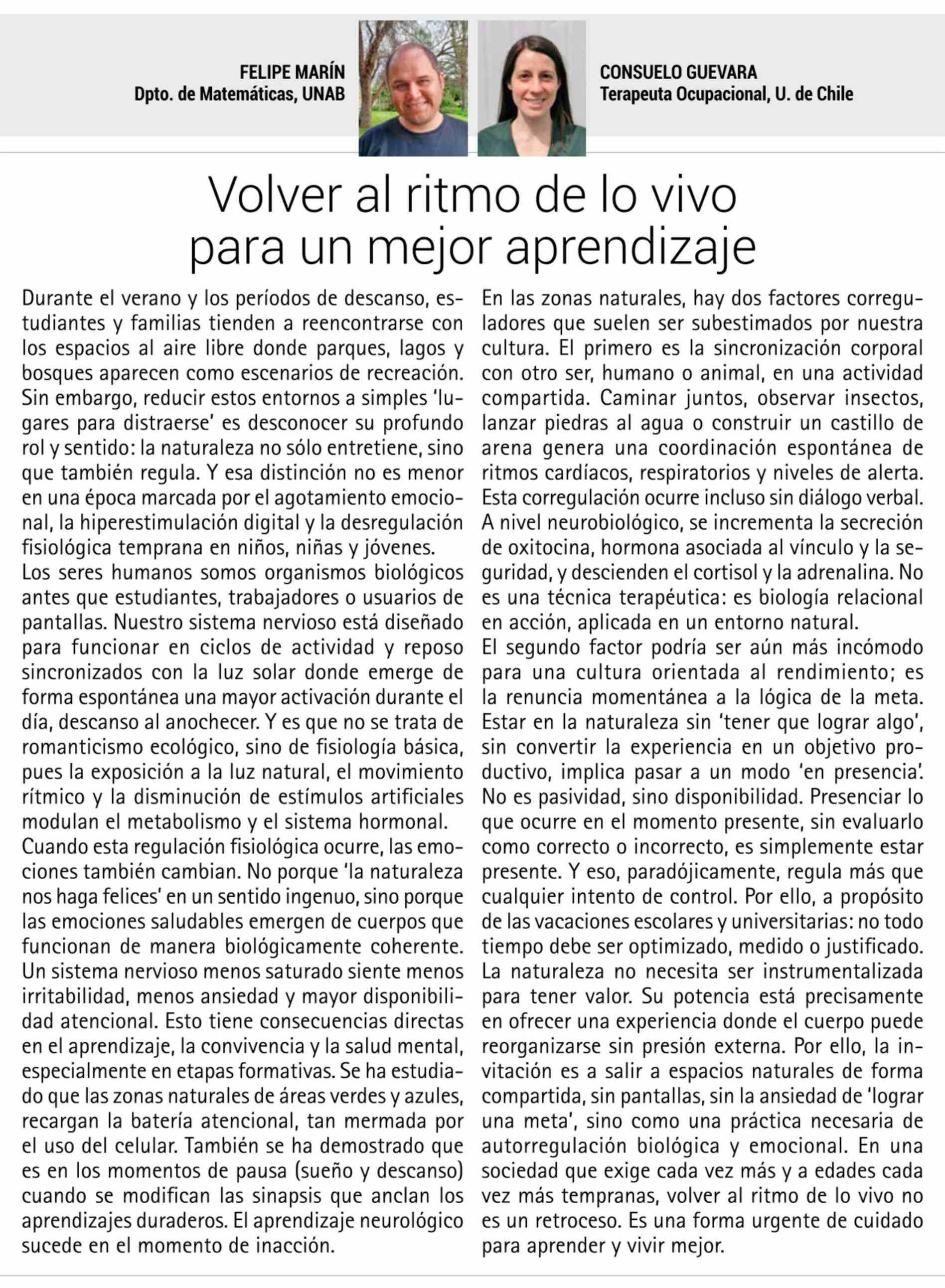 Título: Columnas de Opinión: Volver al ritmo de lo vivo para un mejor aprendizaje