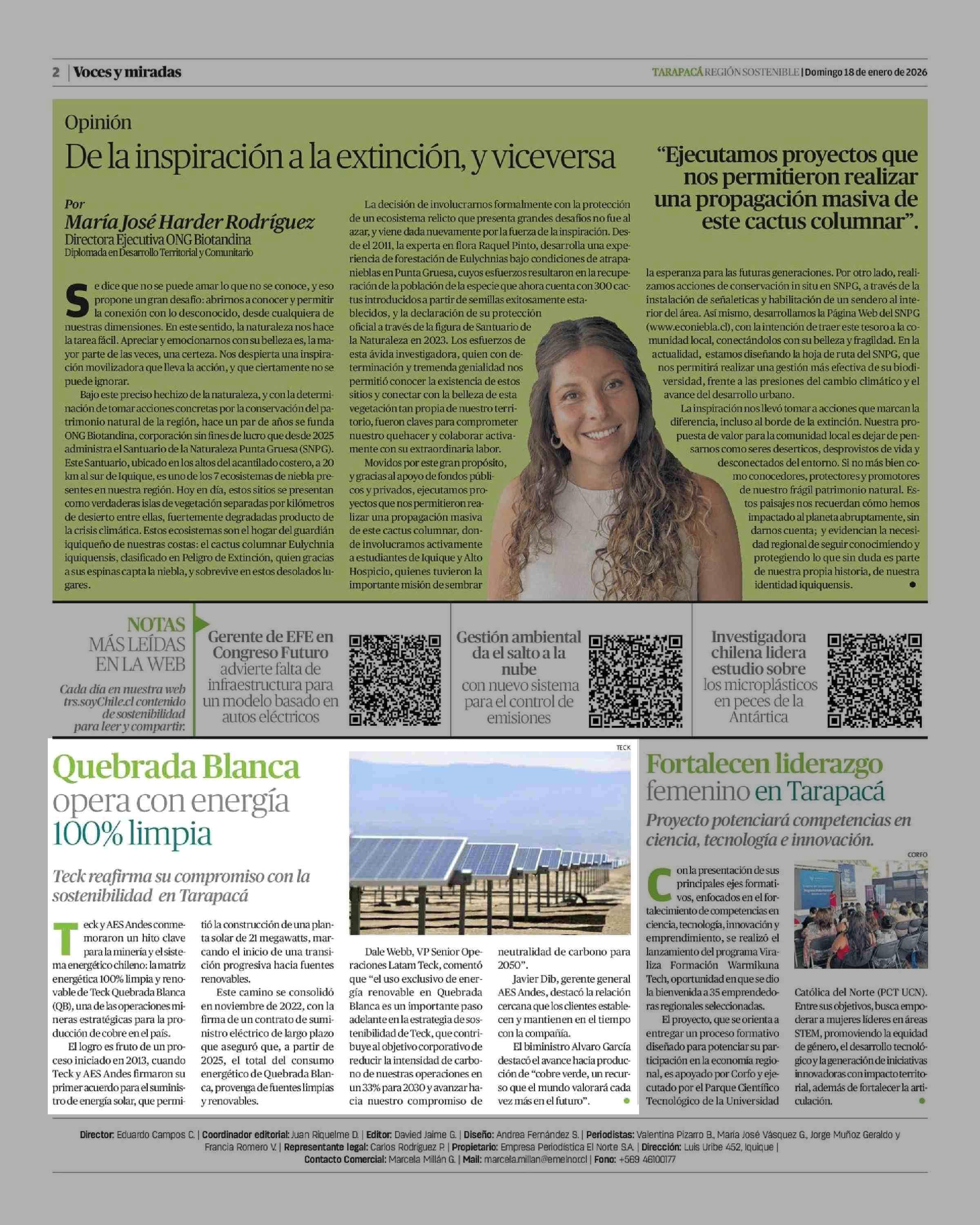Quebrada Blanca Opera con energía 100% limpia 18-01-2026 La Estrella de Iquique |