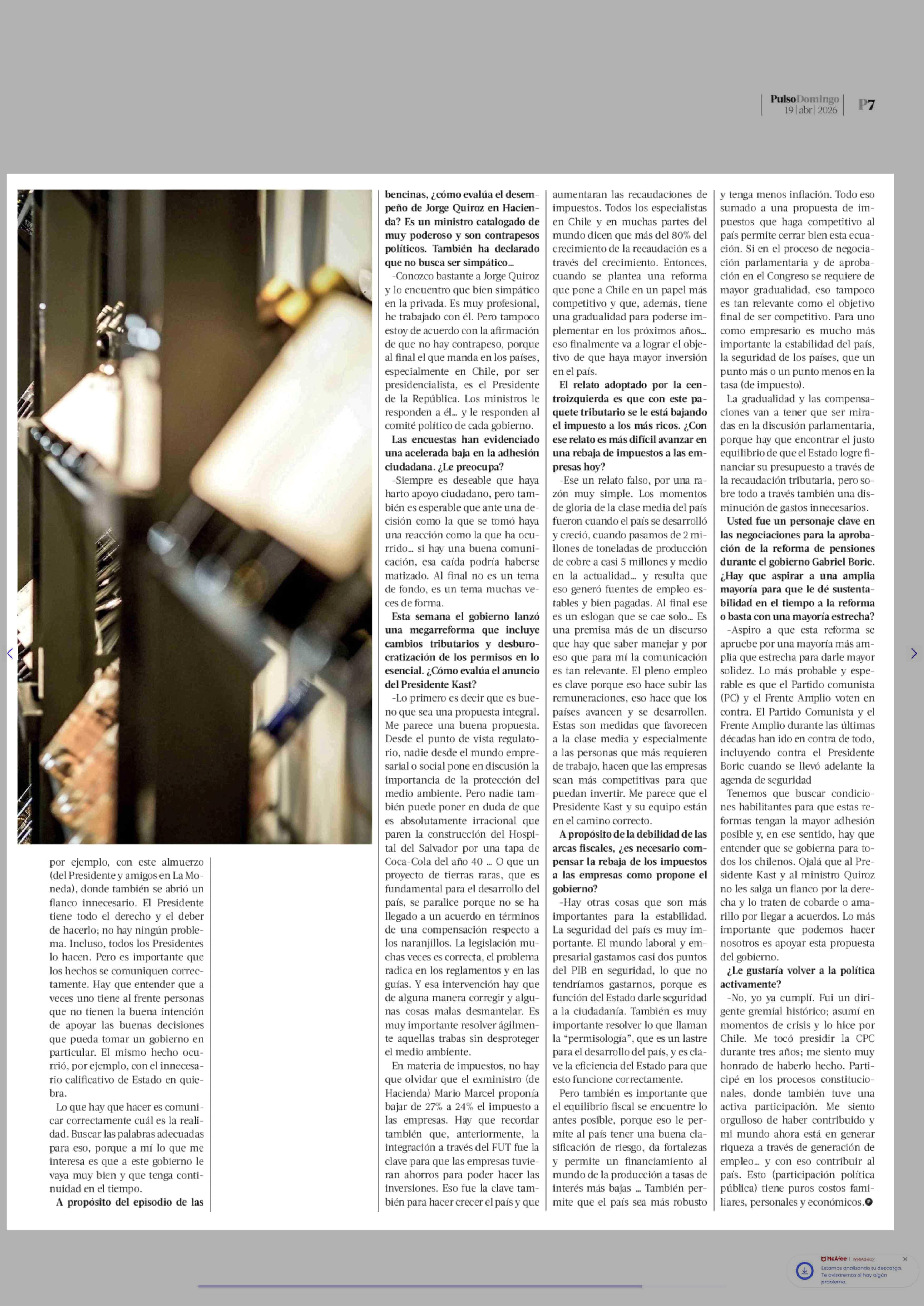 JUAN SUTIL "Aspiro a que esta reforma se apruebe por una mayoría más amplia que estrecha, para darle mayor solidez" 19-04-2026 La Tercera |