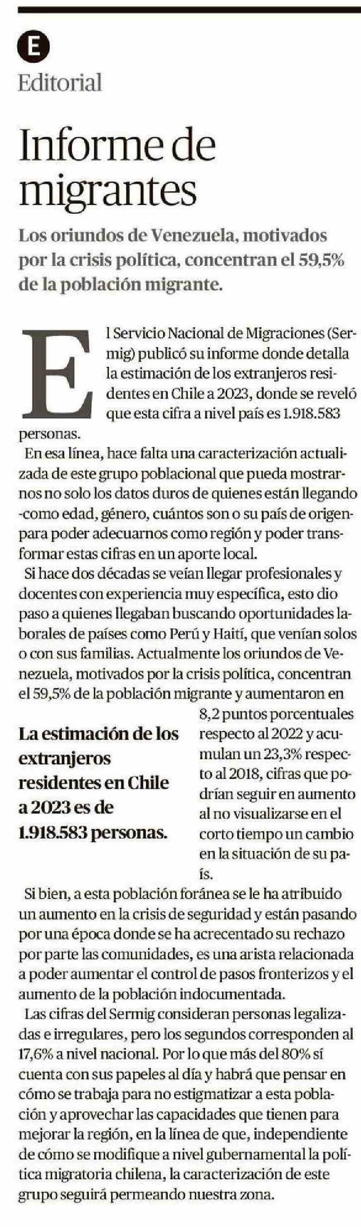 Informe de migrantes 23-01-2025 El Austral de la Araucanía |