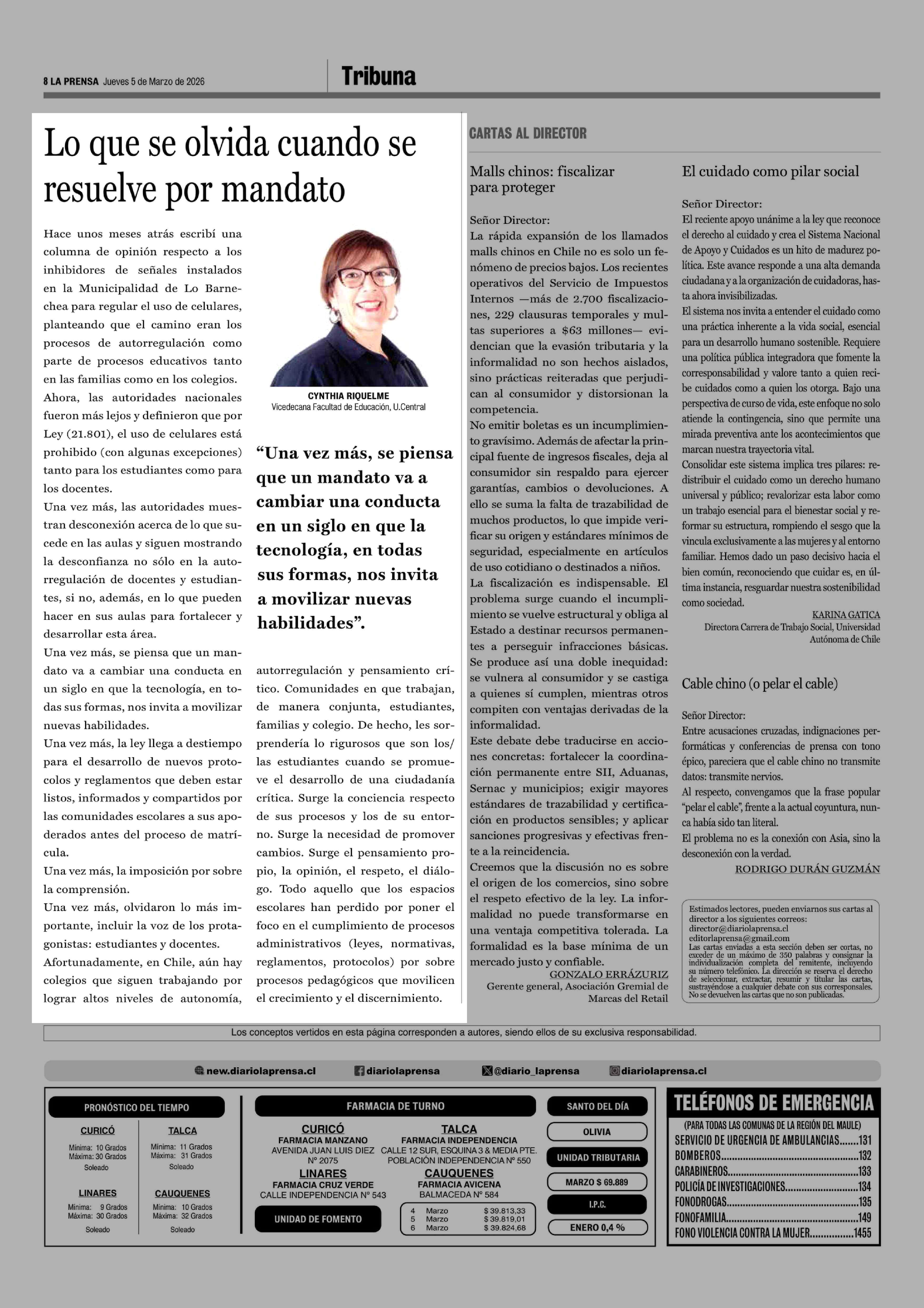 | Fecha: | 05-03-2026 | Sector: | Columnas de Opinión | Región: | Región del Maule |
