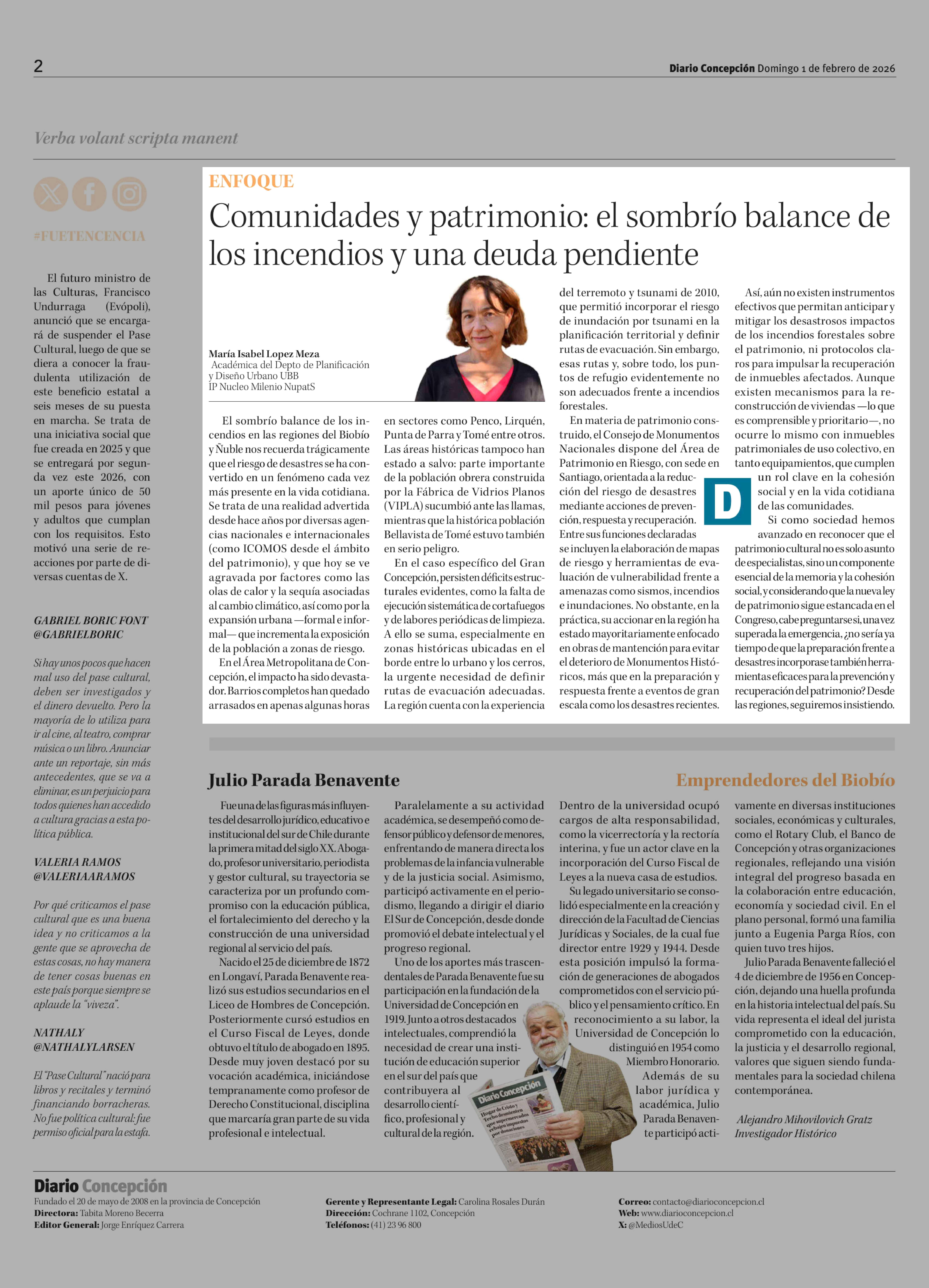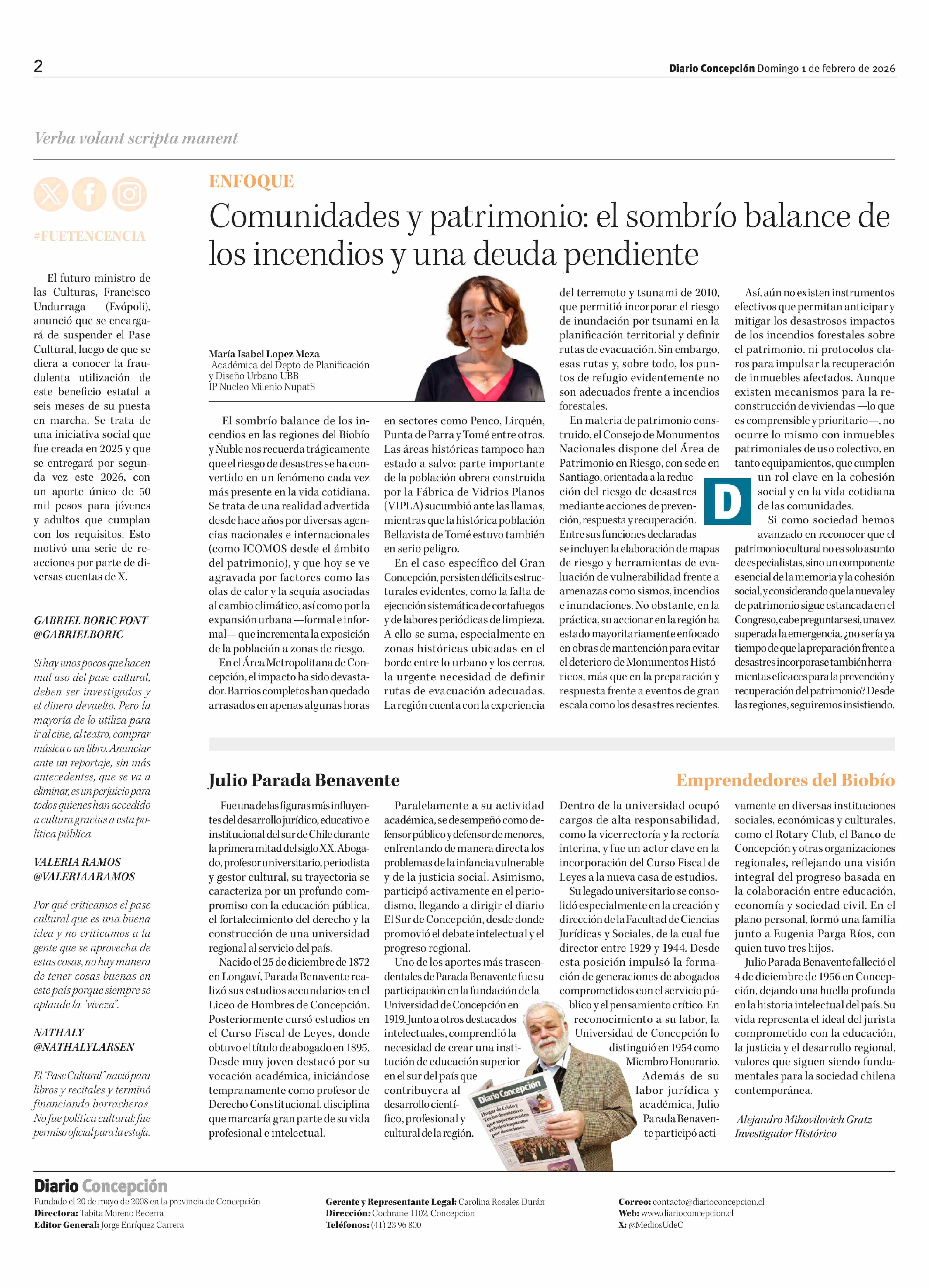 Fecha: 01-02-2026 Sector: Columnas de Opinión Región: Región del Bío-Bío