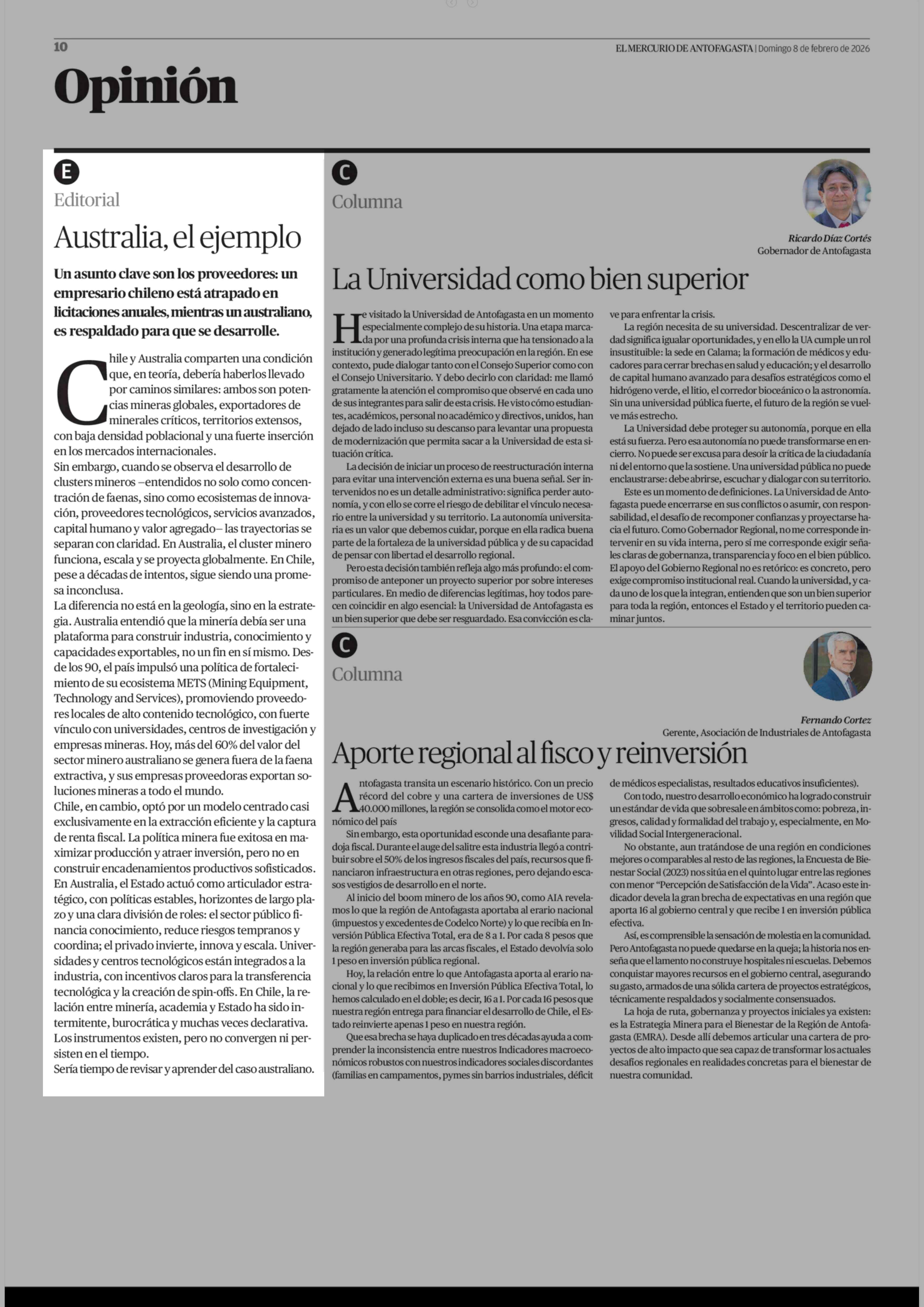 Editorial: Australia, el ejemplo 08-02-2026 El Mercurio de Antofagasta |