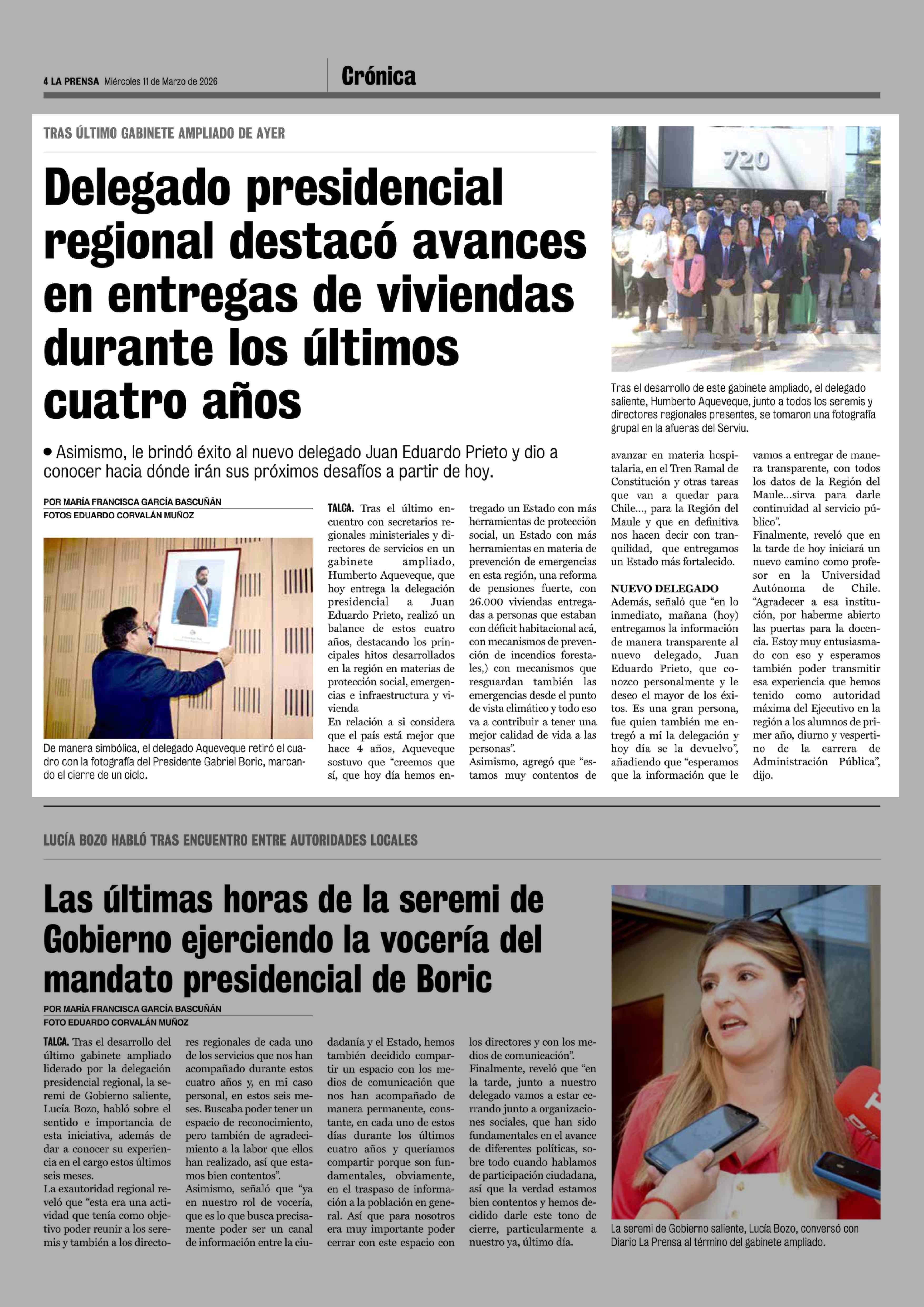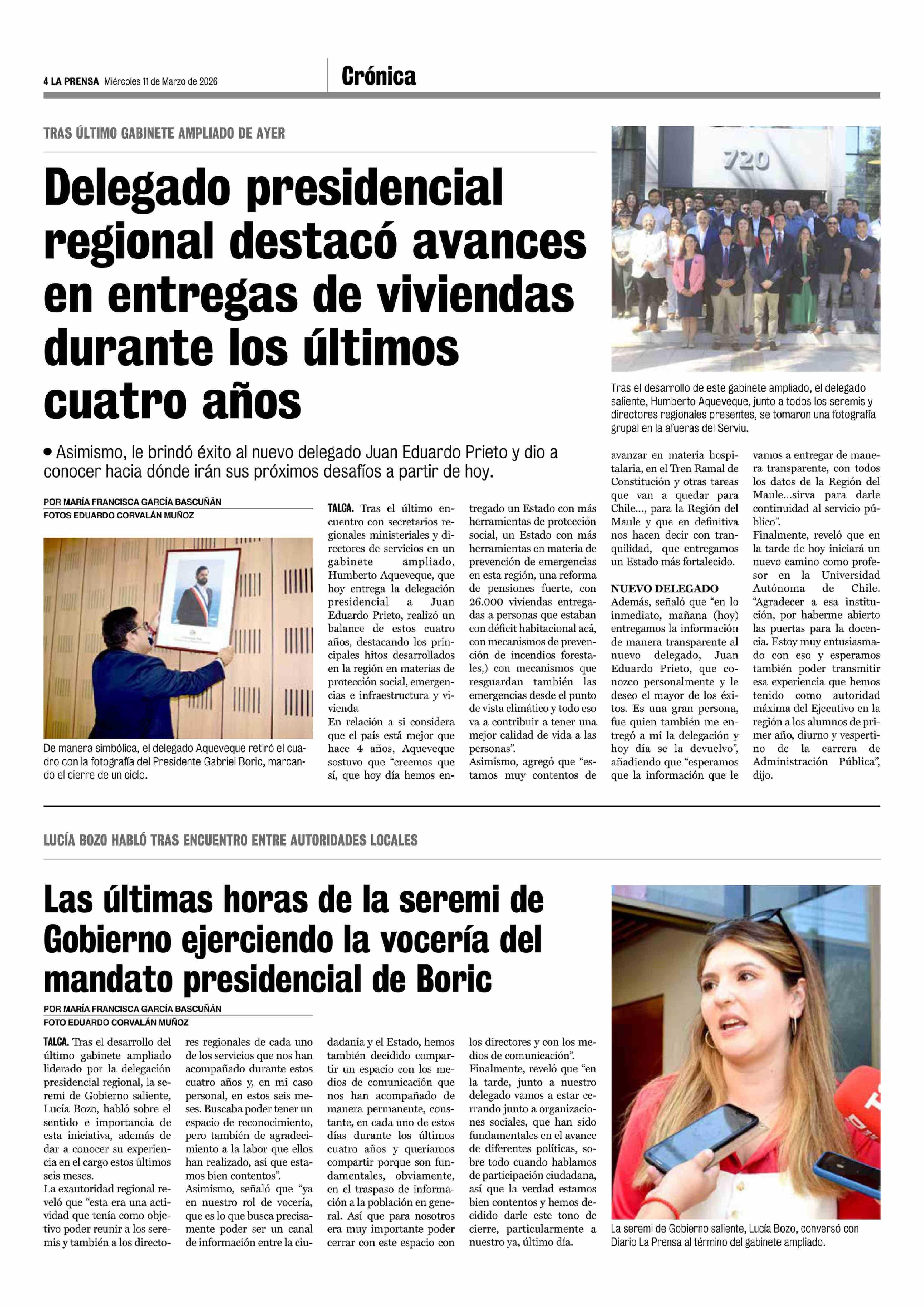 Delegado presidencial regional destacó avances en entregas de viviendas durante los últimos cuatro años 11-03-2026 La Prensa de Curicó |