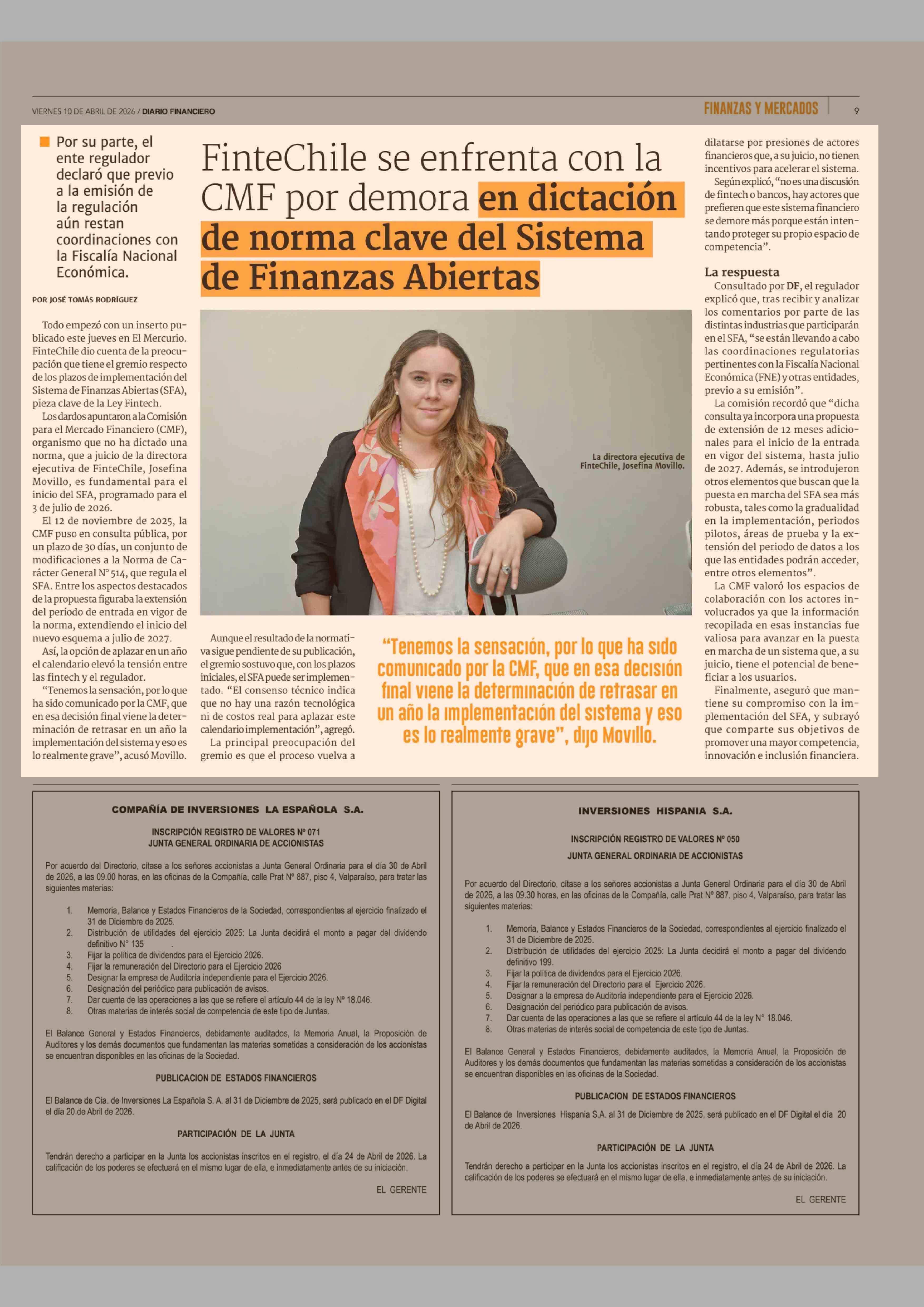 Fuente: Diario Financiero (Diario Financiero) Página(s): 9