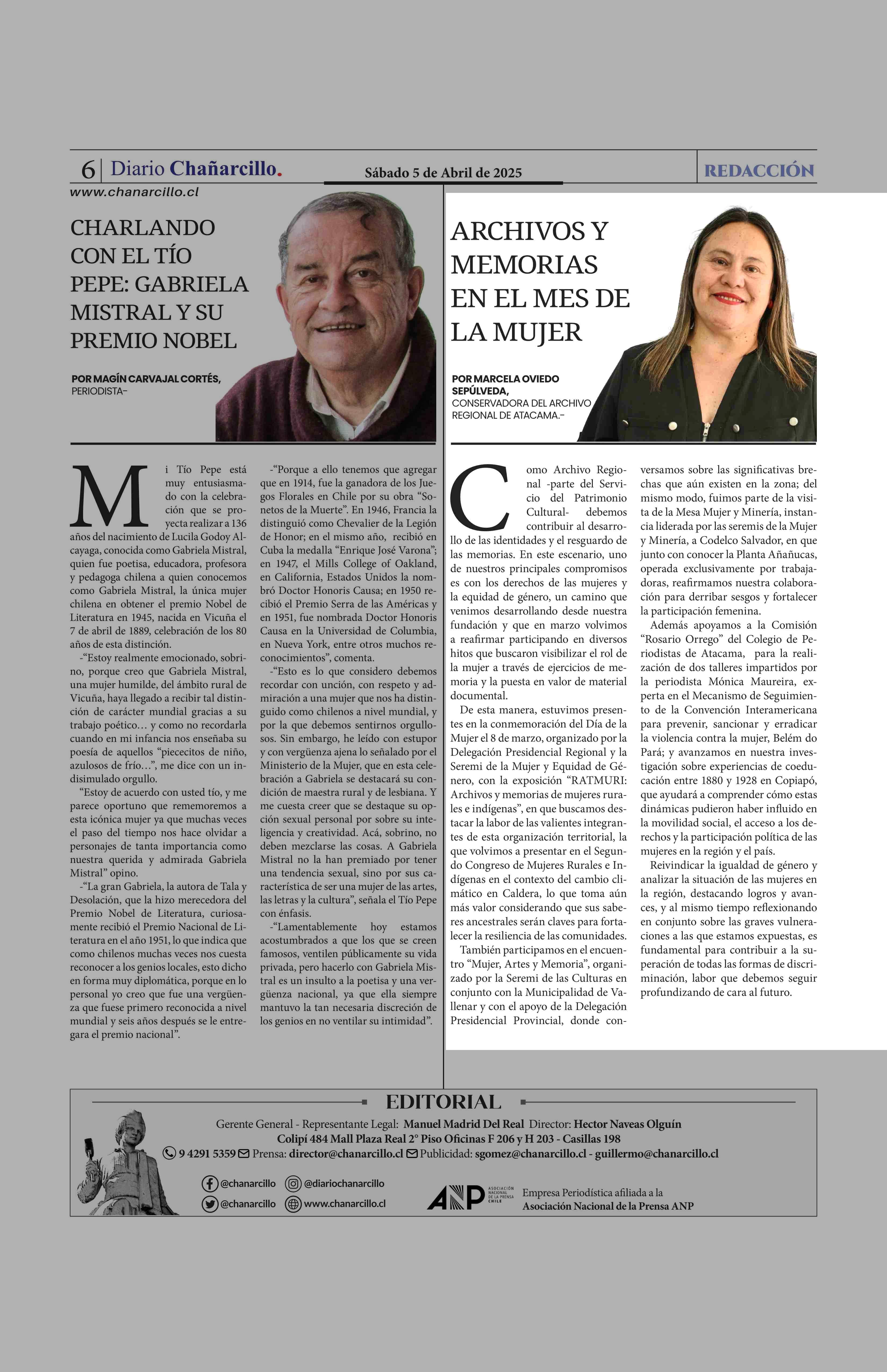 COLUMNAS DE OPINIÓN: ARCHIVOS Y MEMORIAS EN EL MES DE LA MUJER 05-04-2025 Diario Chañarcillo |