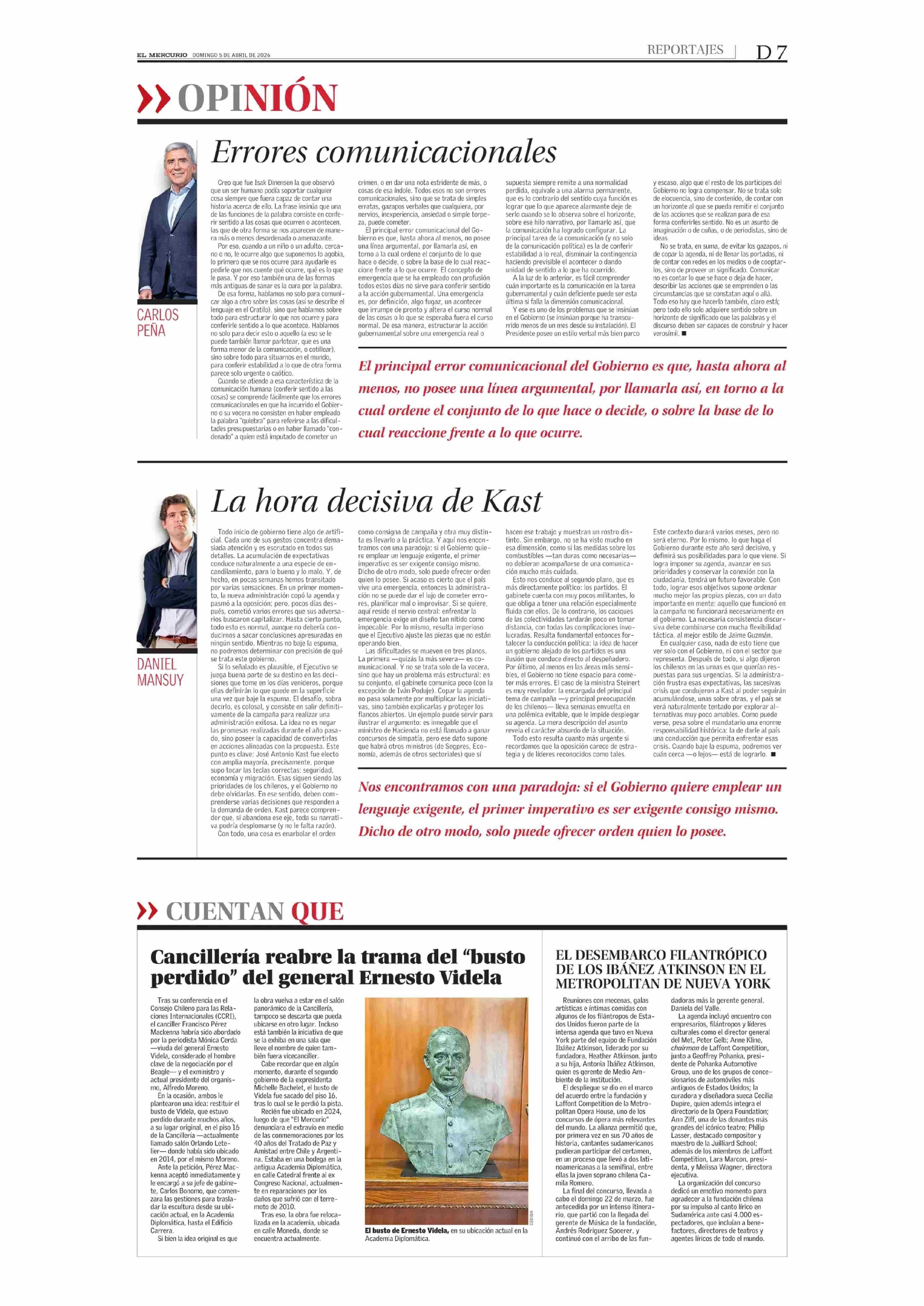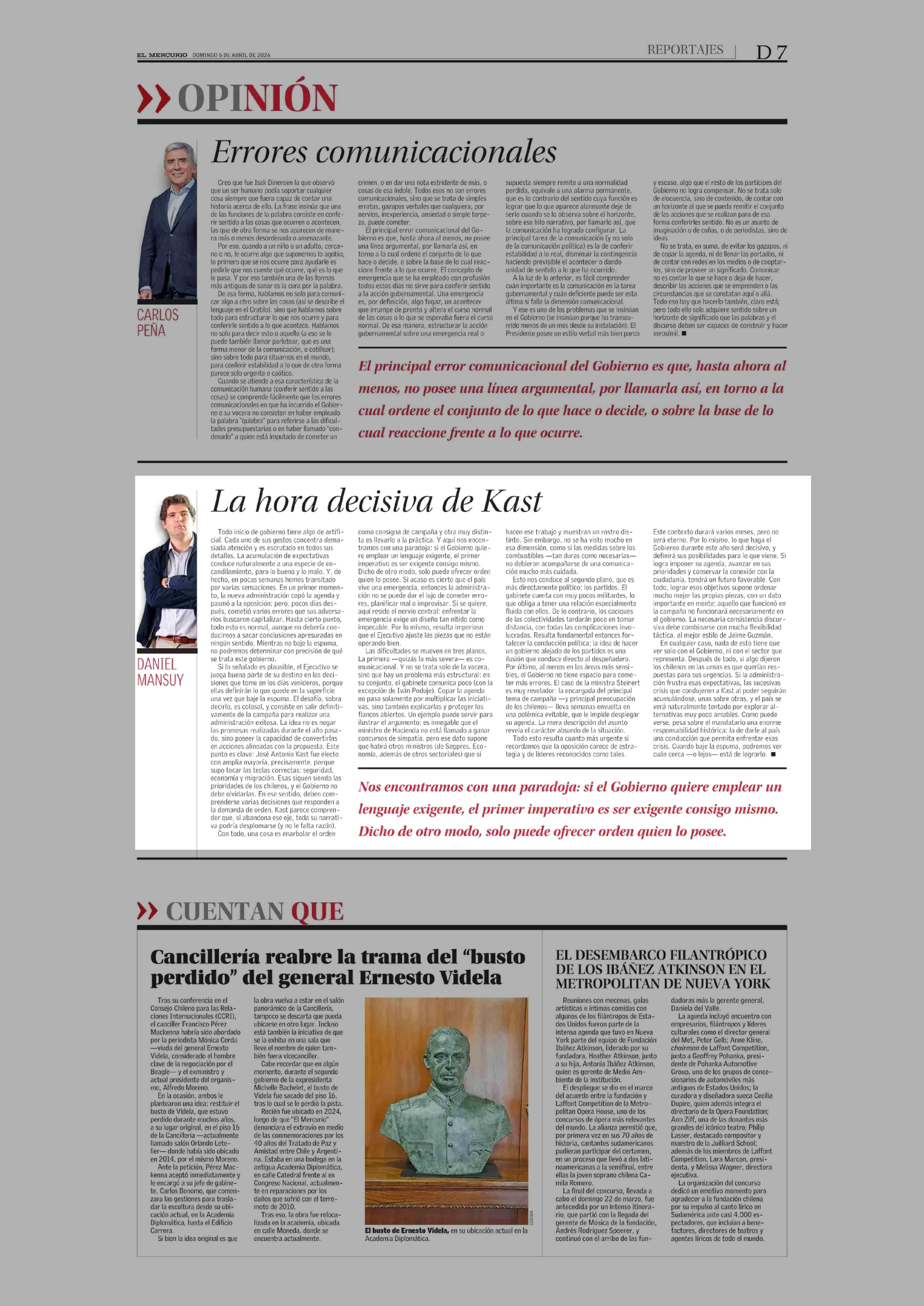 COLUMNAS DE OPINIÓN: La hora decisiva de Kast 05-04-2026 El Mercurio |