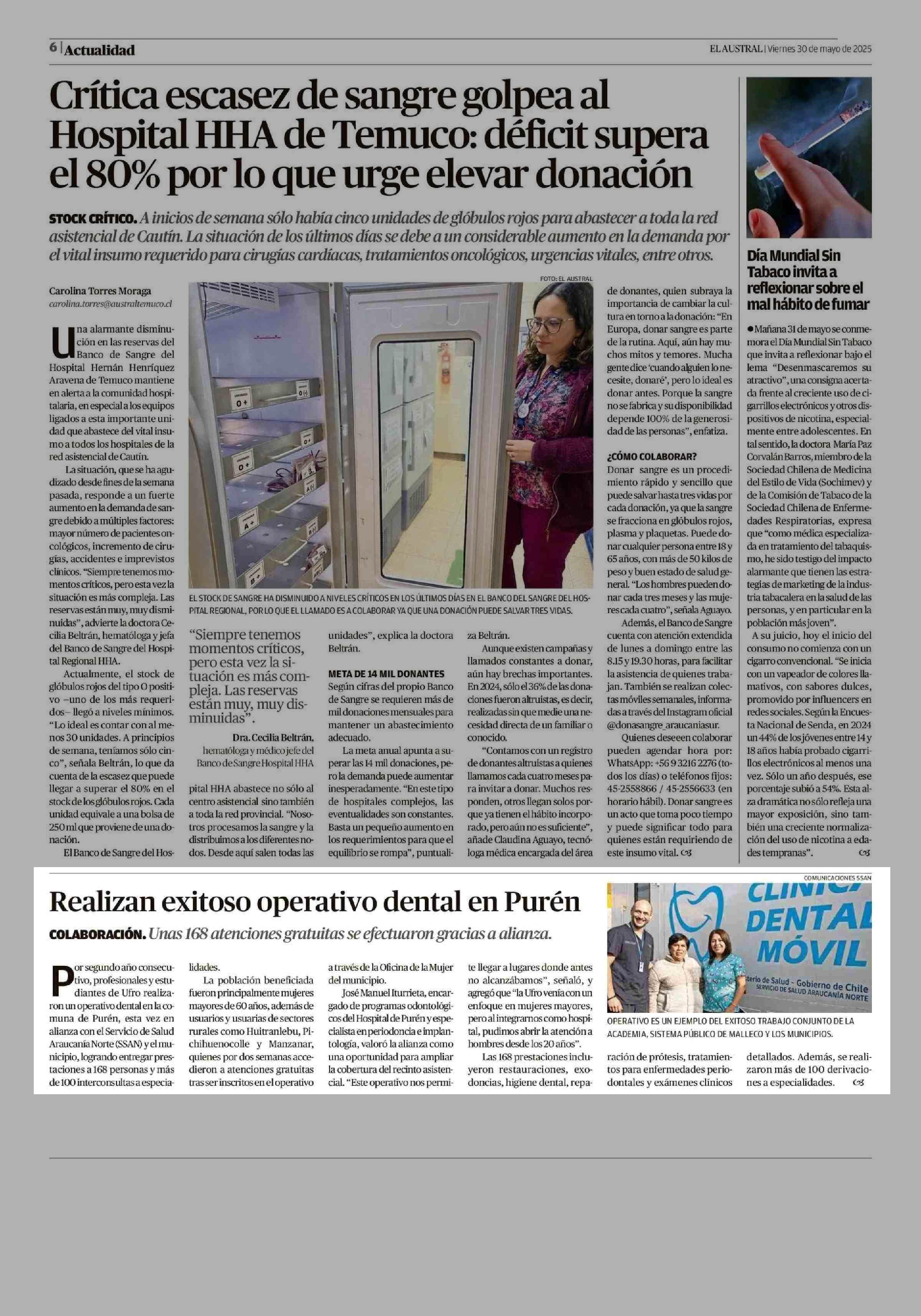 | Fecha: | 30-05-2025 | Sector: | Noticia general | Región: | Región de la Araucanía |