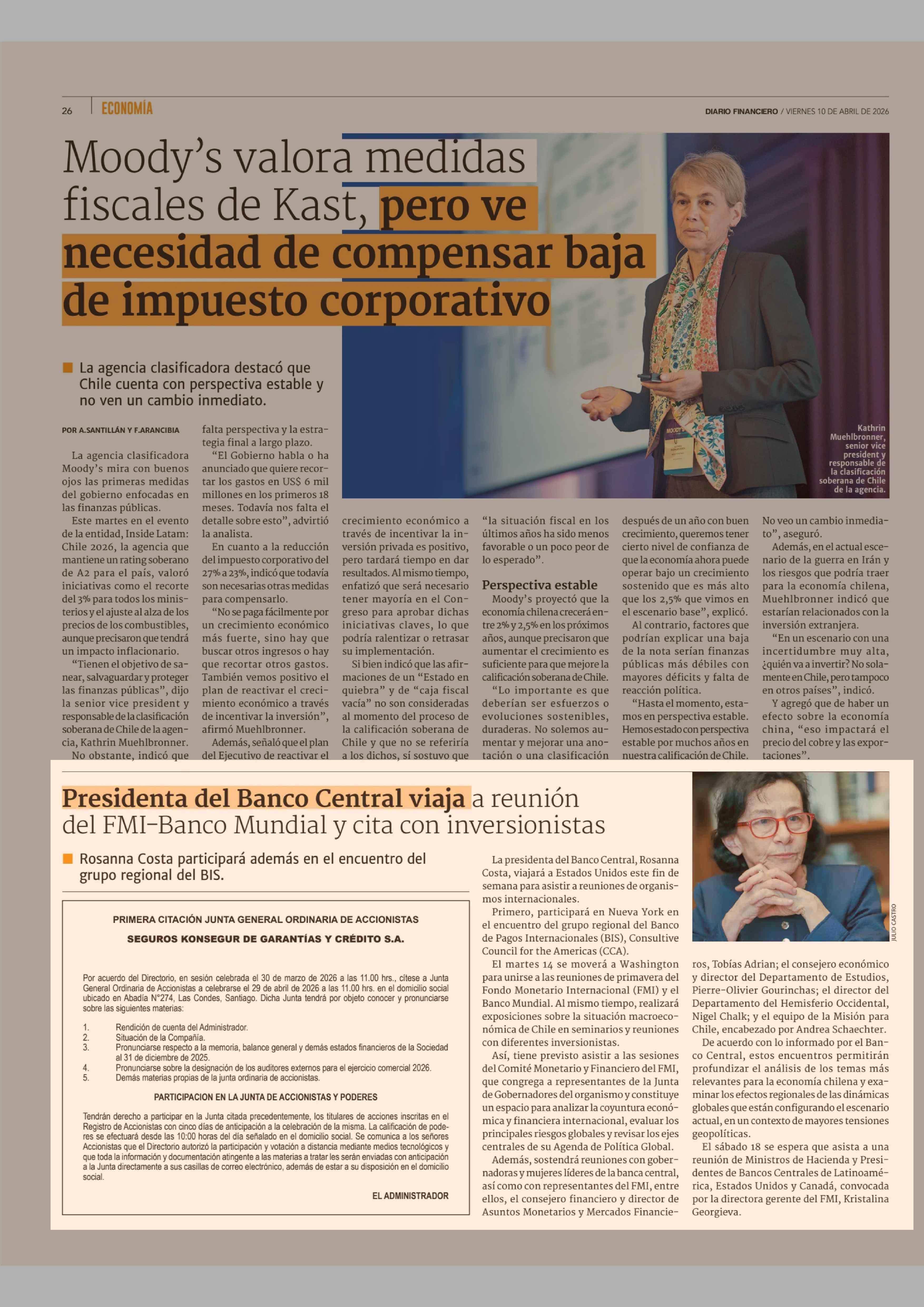 Presidenta del Banco Central viaja a reunión del FMI-Banco Mundial y cita con inversionistas 10-04-2026 Diario Financiero |