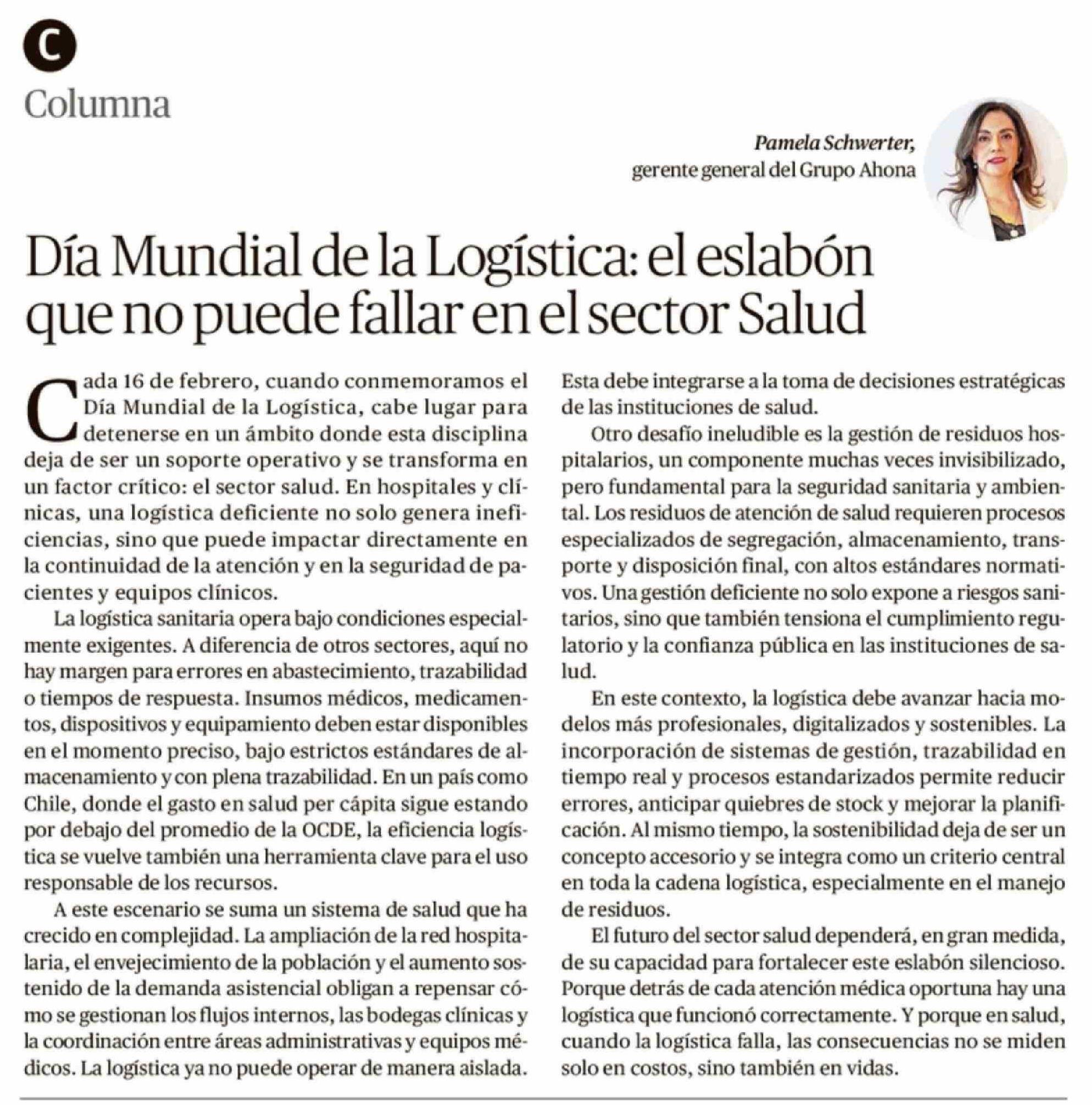 Título: Columnas de Opinión: Día Mundial de la Logística: el eslabón que no puede fallar en el sector Salud