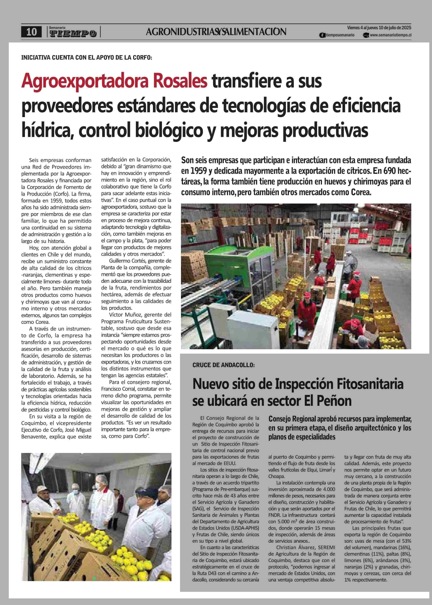 Agroexportadora Rosales transfiere a sus proveedores estándares de tecnologías de eficiencia hídrica, control biológico y mejoras productivas 04-07-2025 Semanario Tiempo |