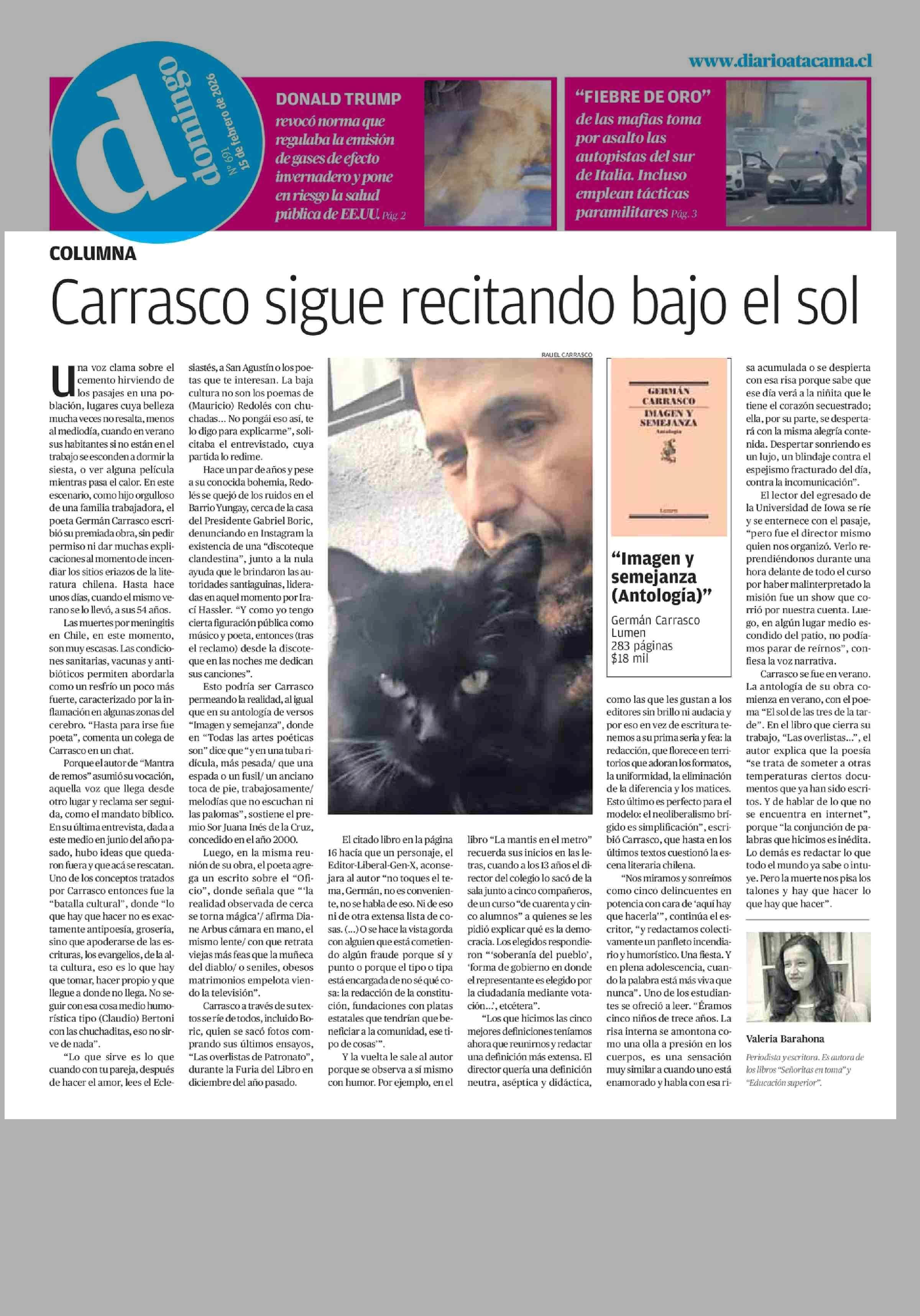 COLUMNAS DE OPINIÓN: Carrasco sigue recitando bajo el sol 15-02-2026 El Diario de Atacama |