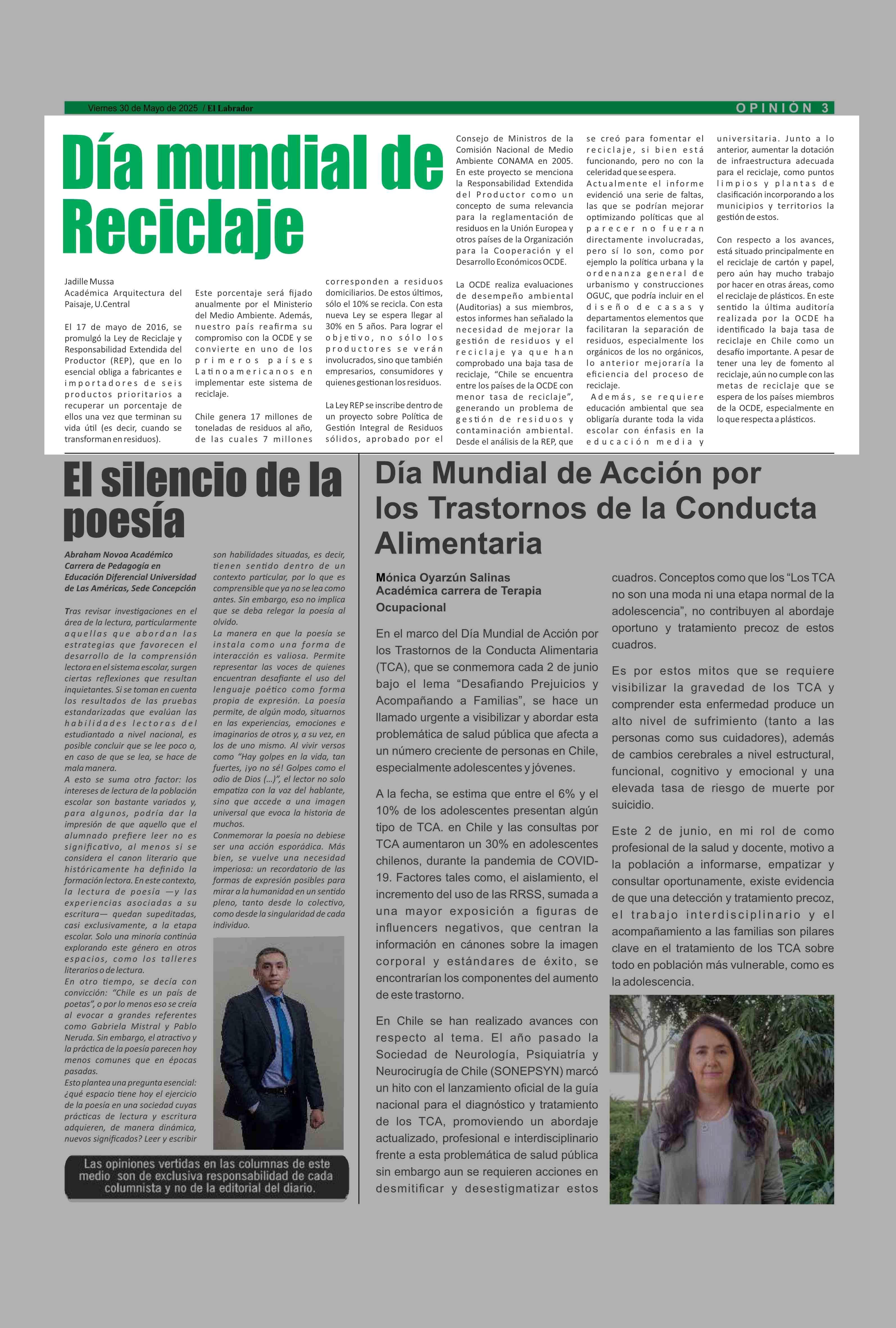 COLUMNAS DE OPINIÓN: Día mundial de Reciclaje 30-05-2025 El Labrador |