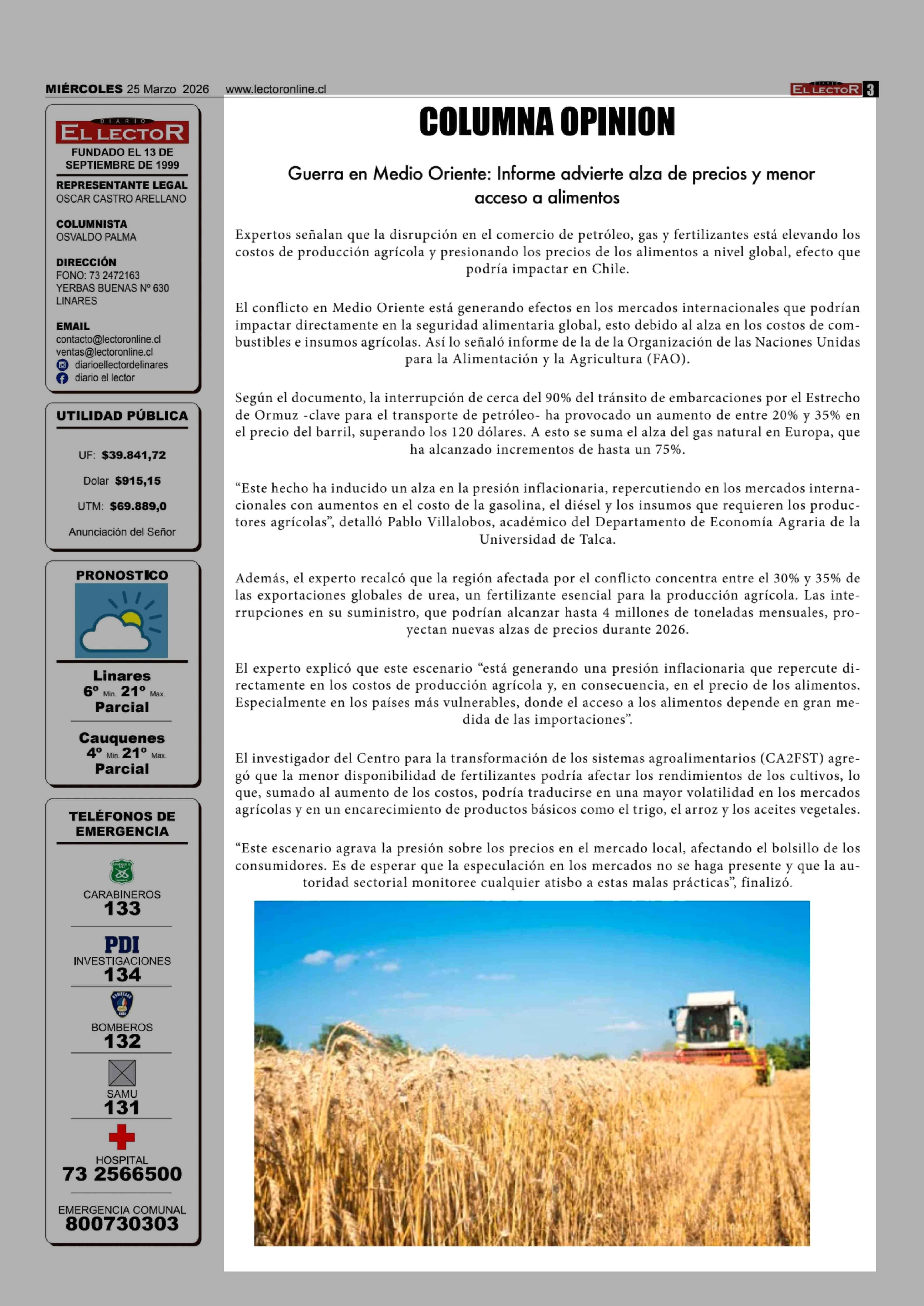 Fecha: 25-03-2026 Sector: Noticia general Región: Región del Maule