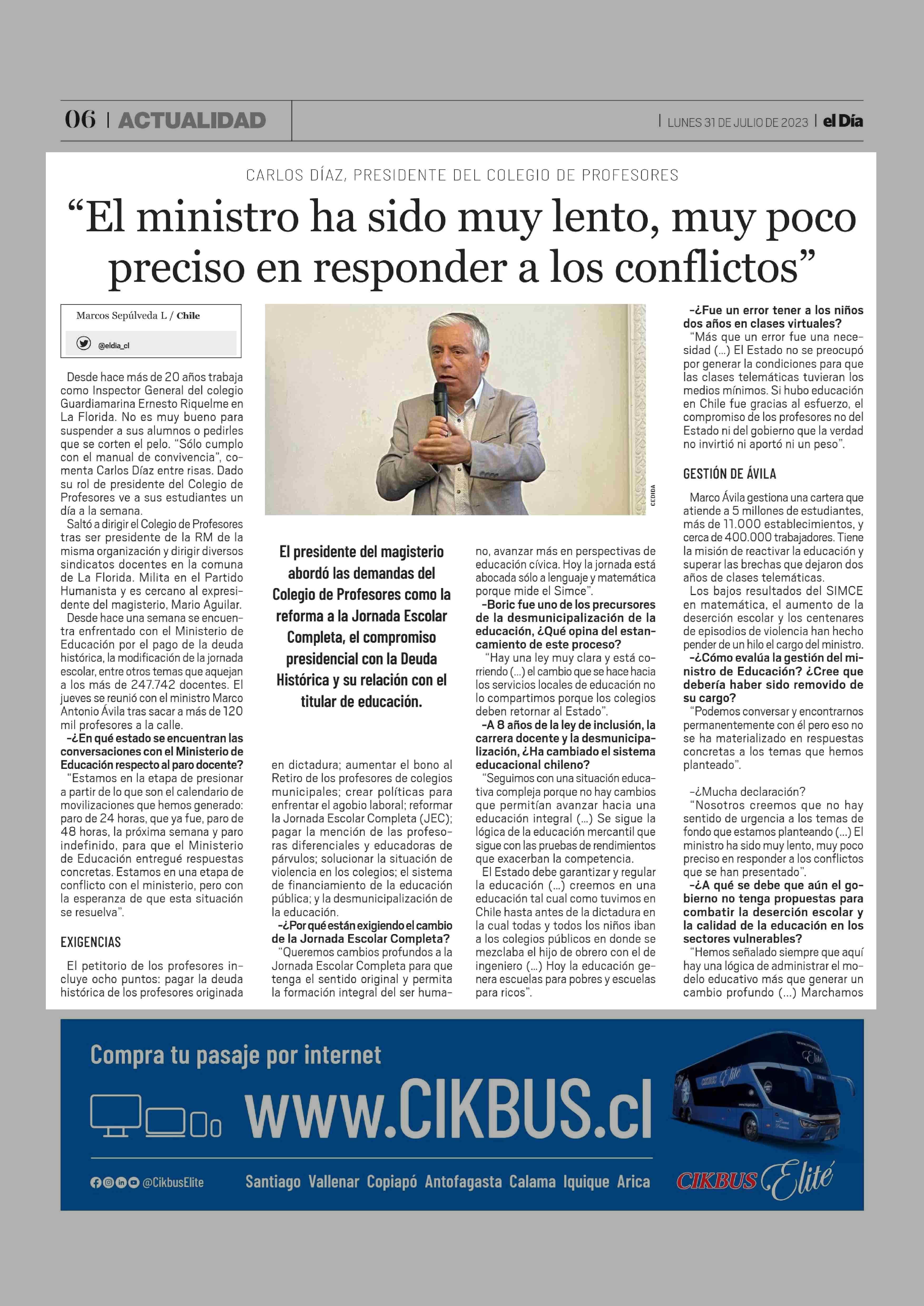 “El ministro ha sido muy lento, muy poco preciso en responder a los conflictos” 31-07-2023 El Día |