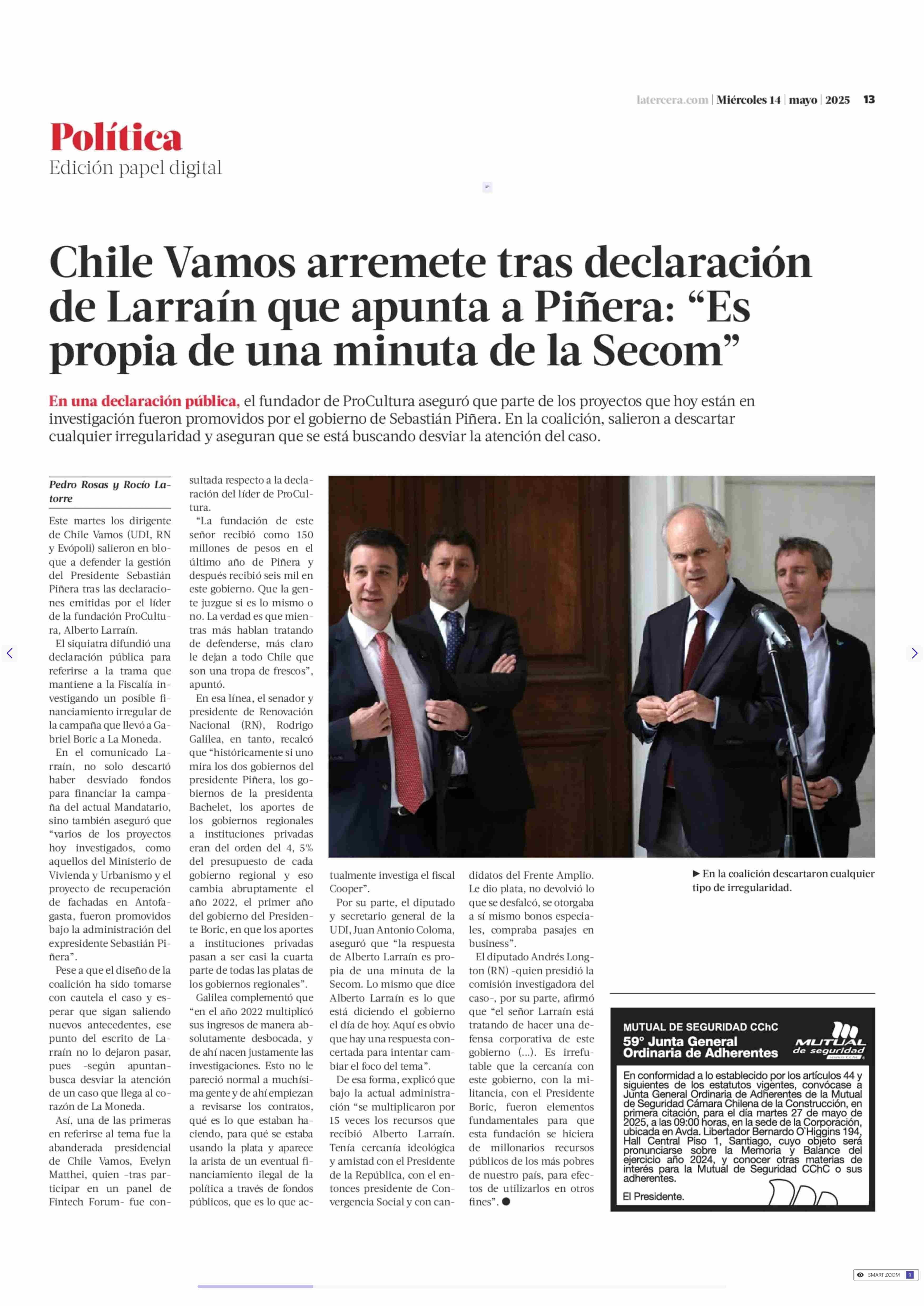 Extractos MUTUAL DE SEGURIDAD CChC 14-05-2025 La Tercera |