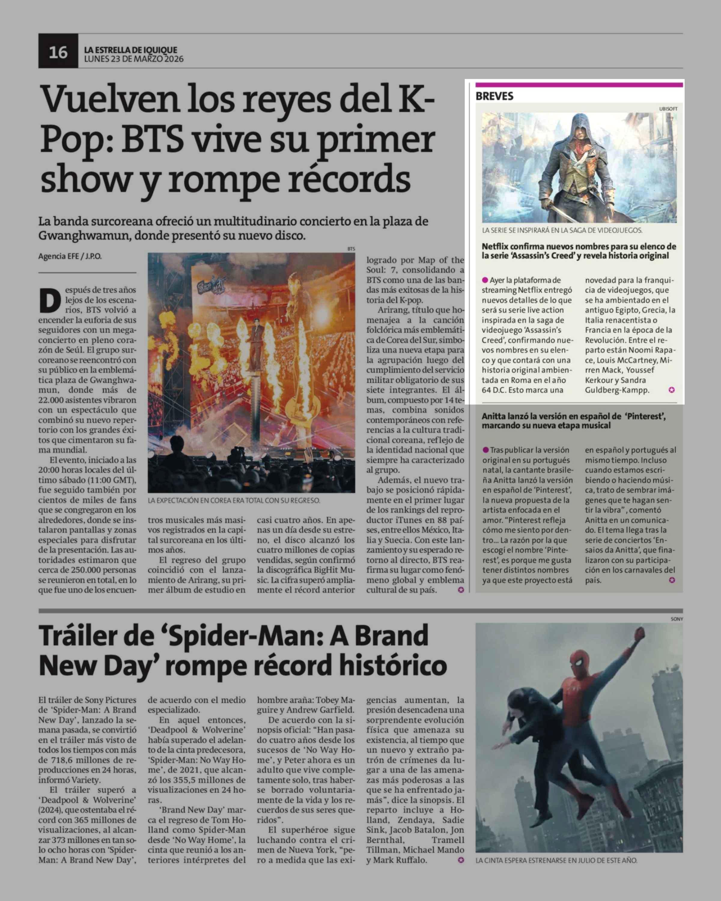 Fuente: La Estrella de Iquique (La Estrella de Iquique) Página(s): 16