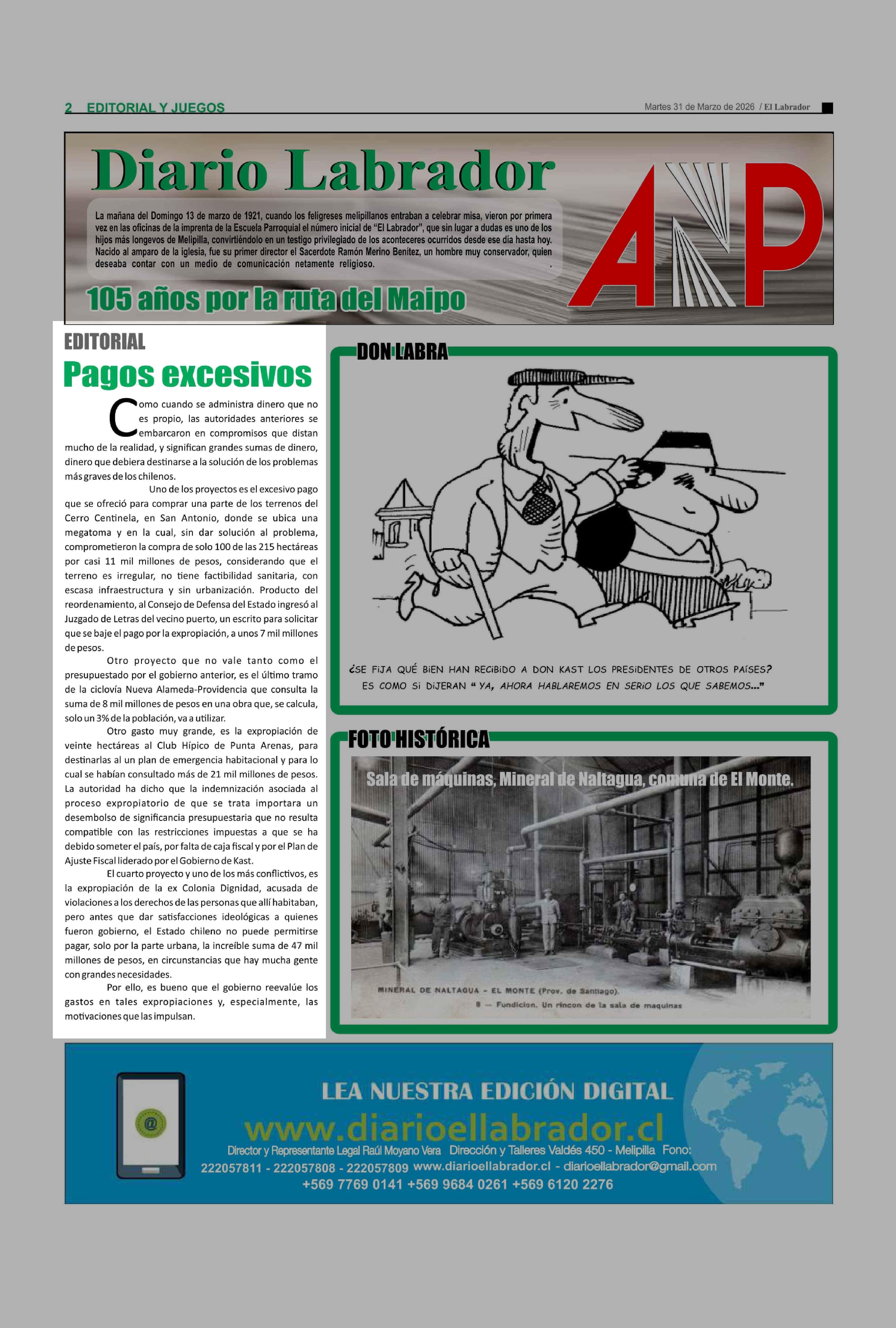 Editorial: Pagos excesivos 31-03-2026 El Labrador |