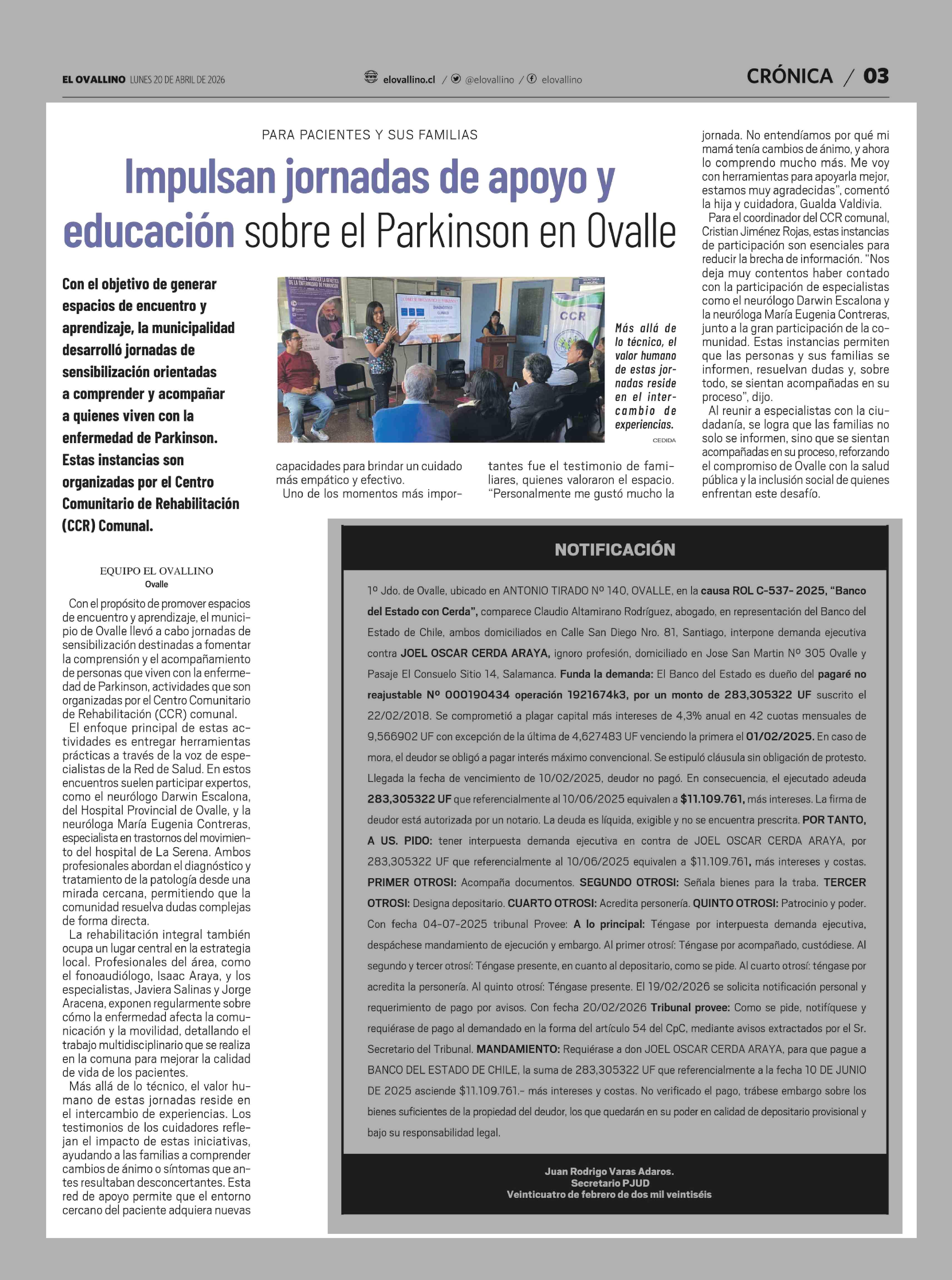 Impulsan jornadas de apoyo y educación sobre el Parkinson en Ovalle 20-04-2026 El Ovallino |