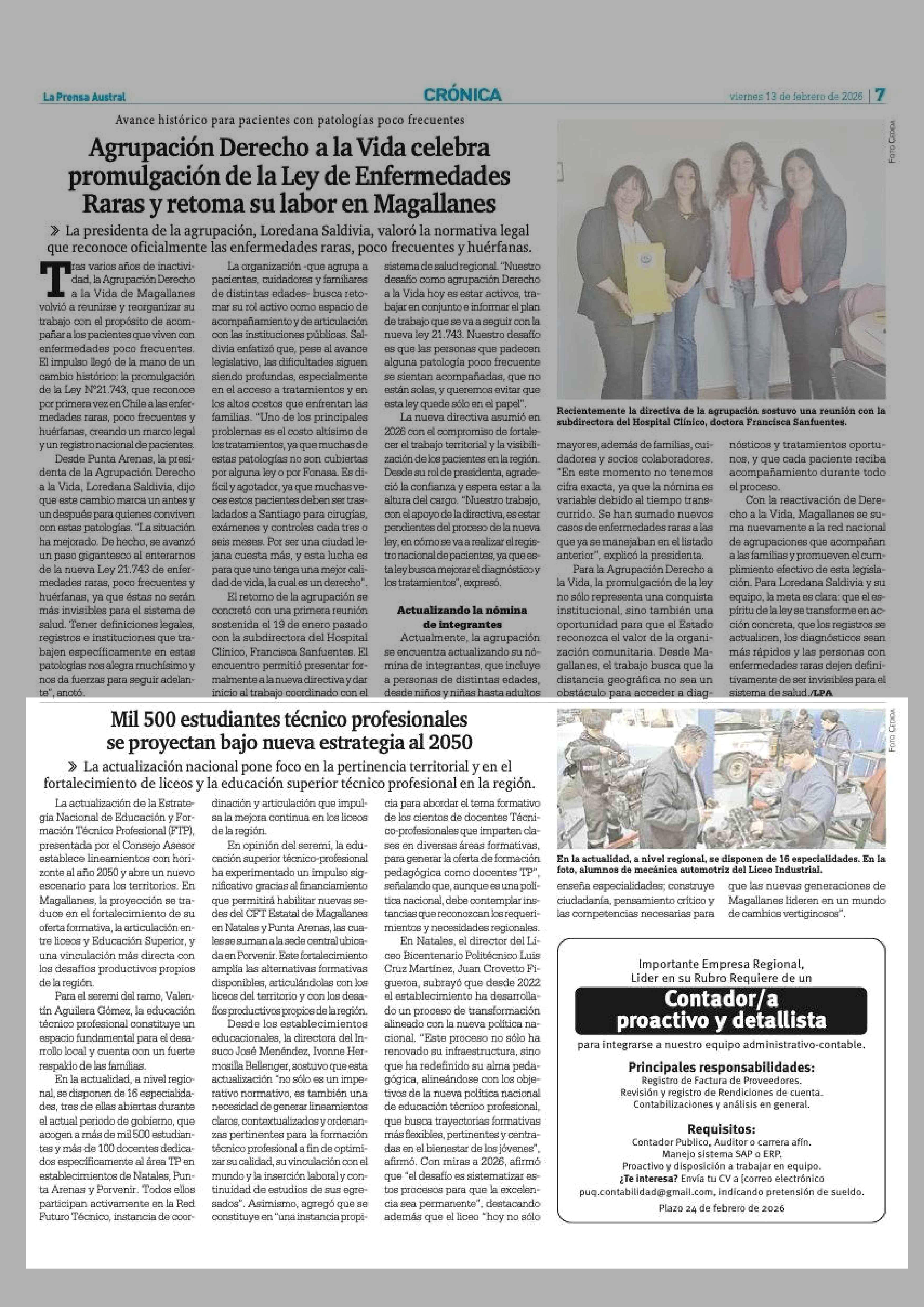 Mil 500 estudiantes técnico profesionales se proyectan bajo nueva estrategia al 2050 13-02-2026 La Prensa Austral |