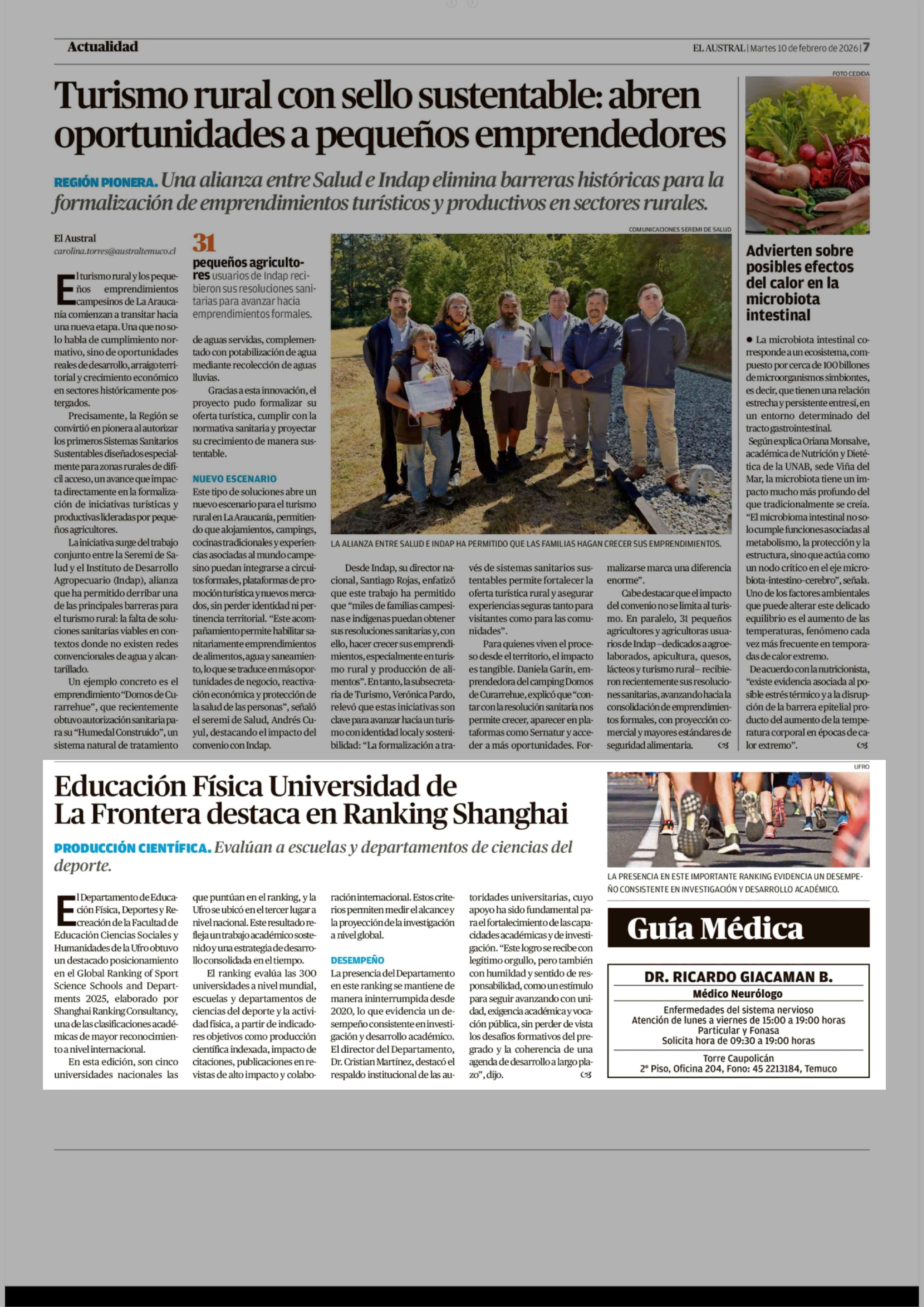 Educación Física Universidad de La Frontera destaca en Ranking Shanghai 10-02-2026 El Austral de la Araucanía |