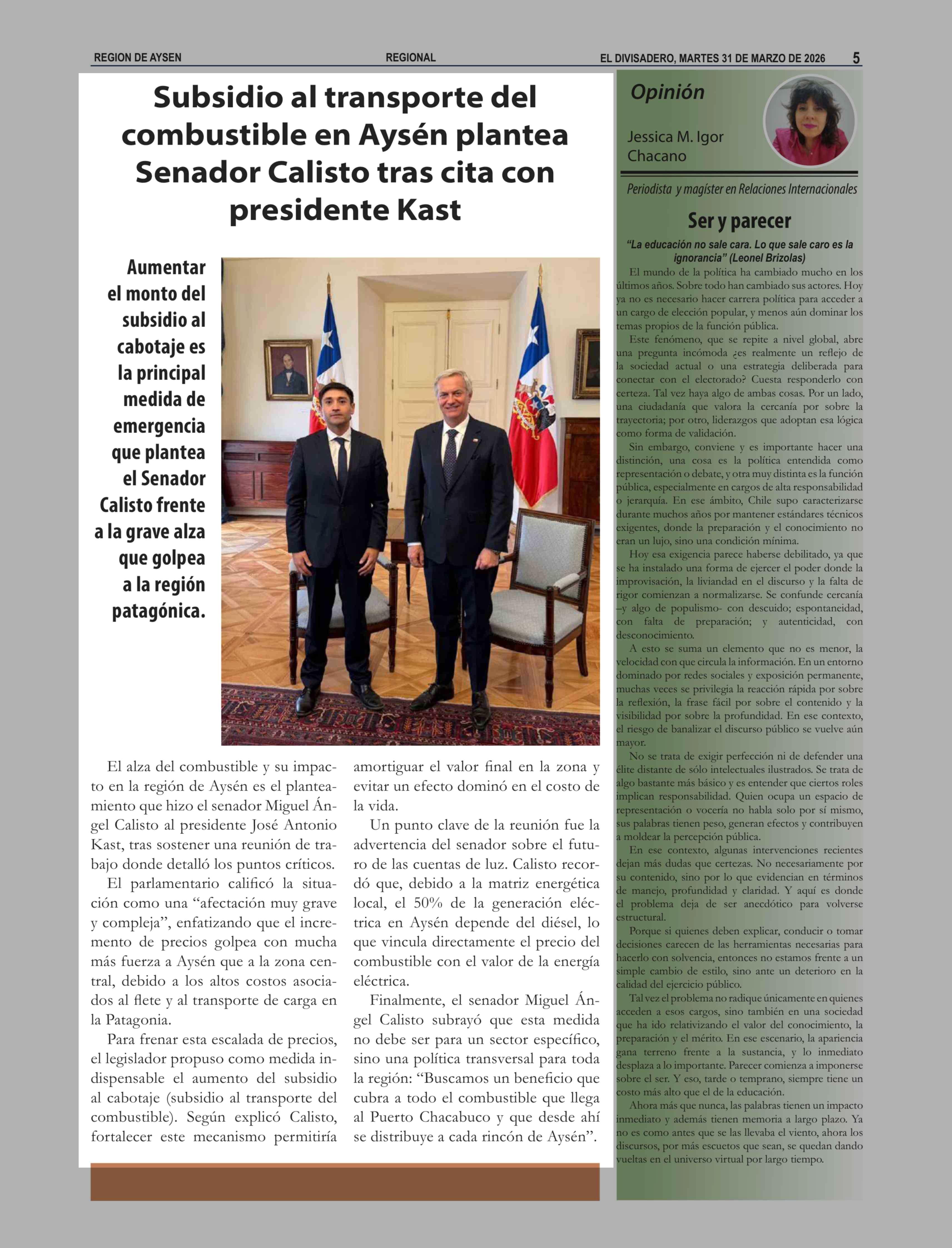 Subsidio al transporte del combustible en Aysén plantea Senador Calisto tras cita con presidente Kast 31-03-2026 El Divisadero |