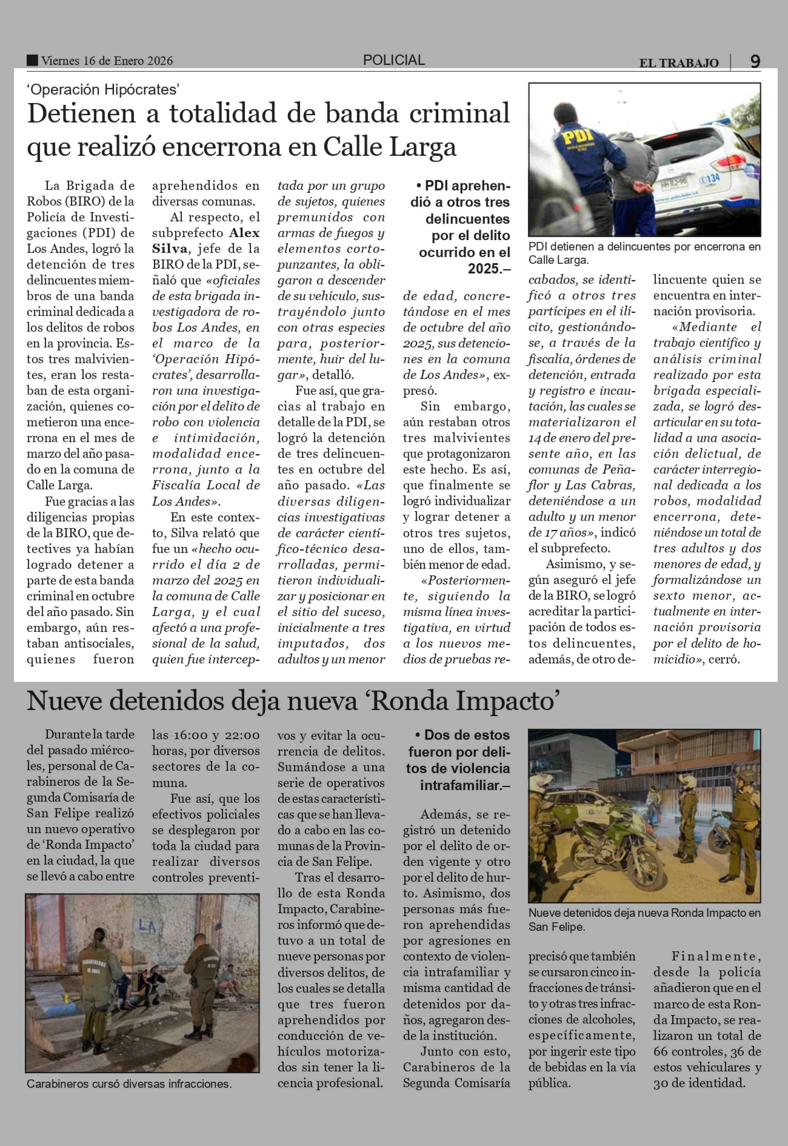 Detienen a totalidad de banda criminal que realizó encerrona en Calle Larga 16-01-2026 El Trabajo |