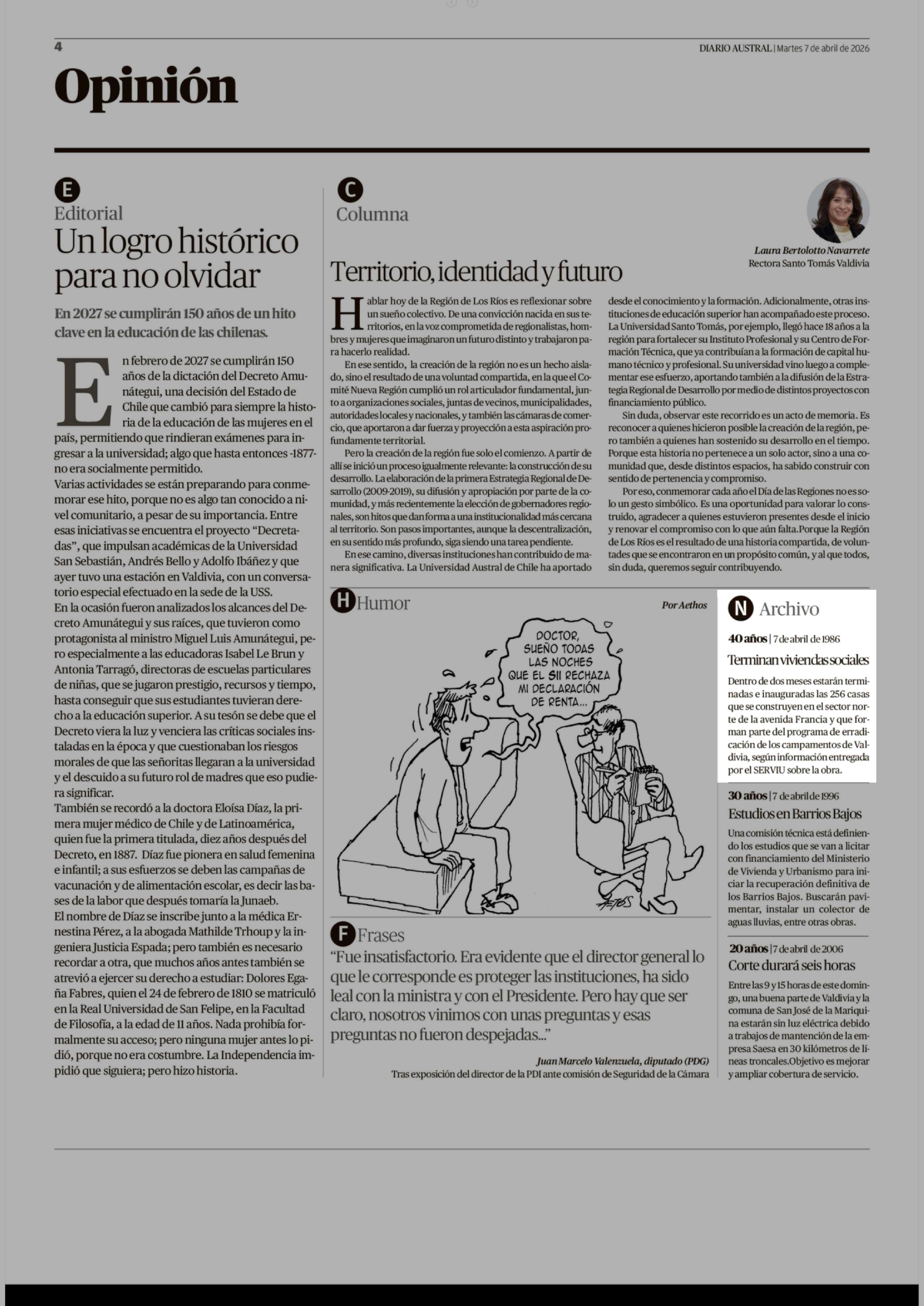 | Fecha: | 07-04-2026 | Sector: | Noticia general | Región: | Región de Los Ríos |