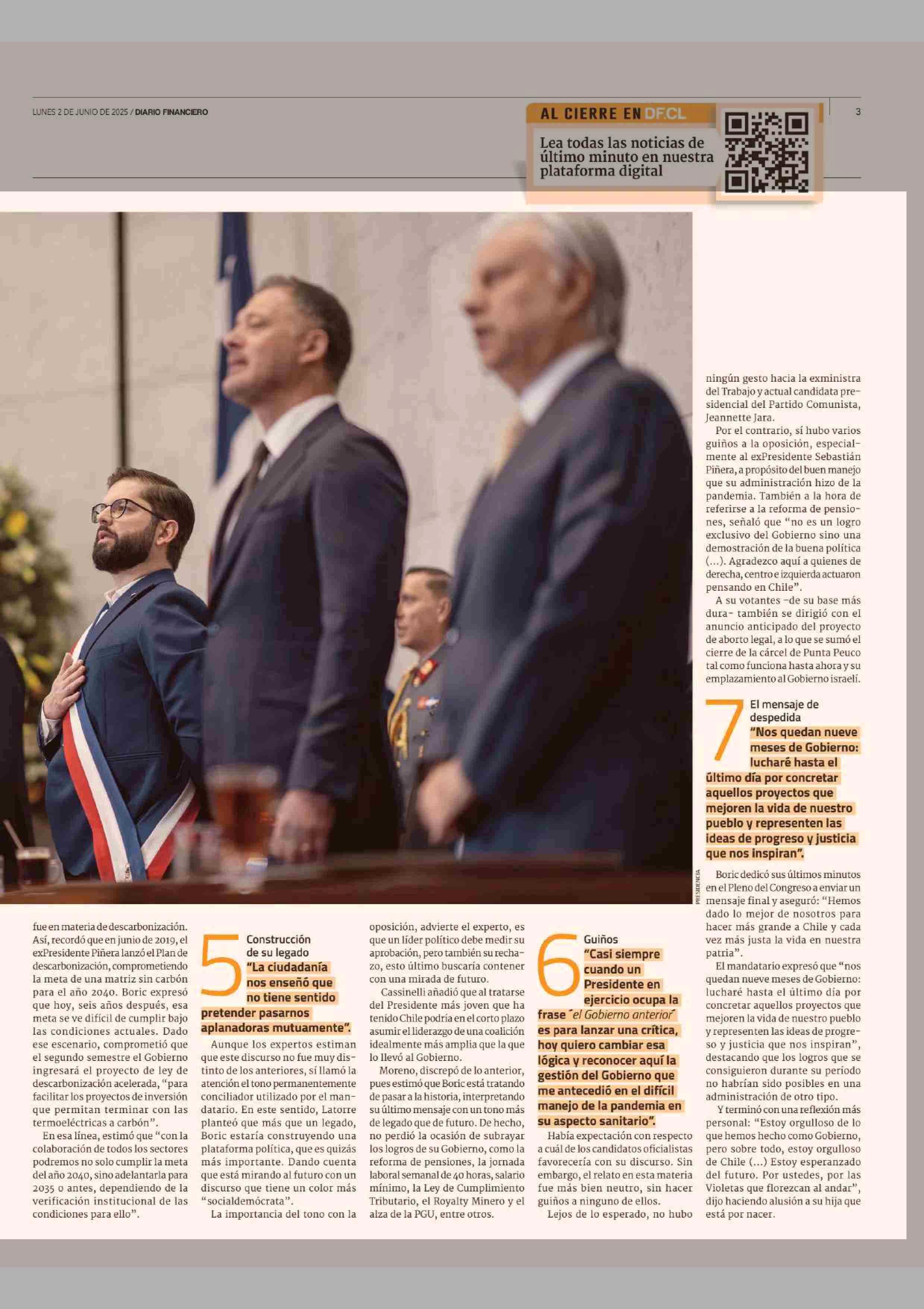 Las siete claves que dejó la última Cuenta Pública del Presidente Boric 02-06-2025 Diario Financiero |