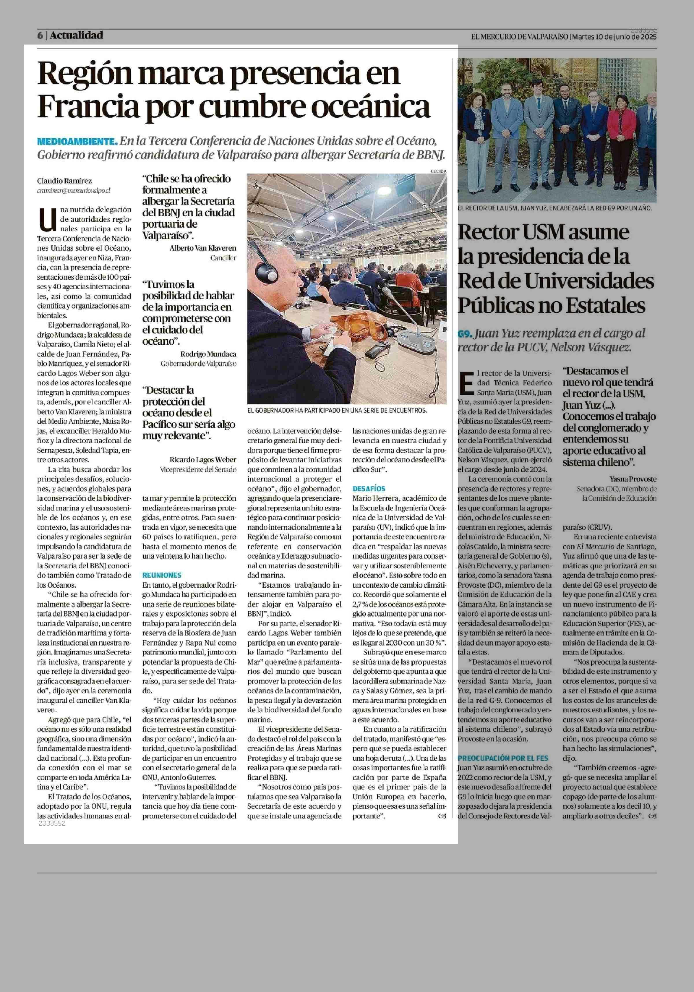 Región marca presencia en Francia por cumbre oceánica 10-06-2025 El Mercurio de Valparaíso |
