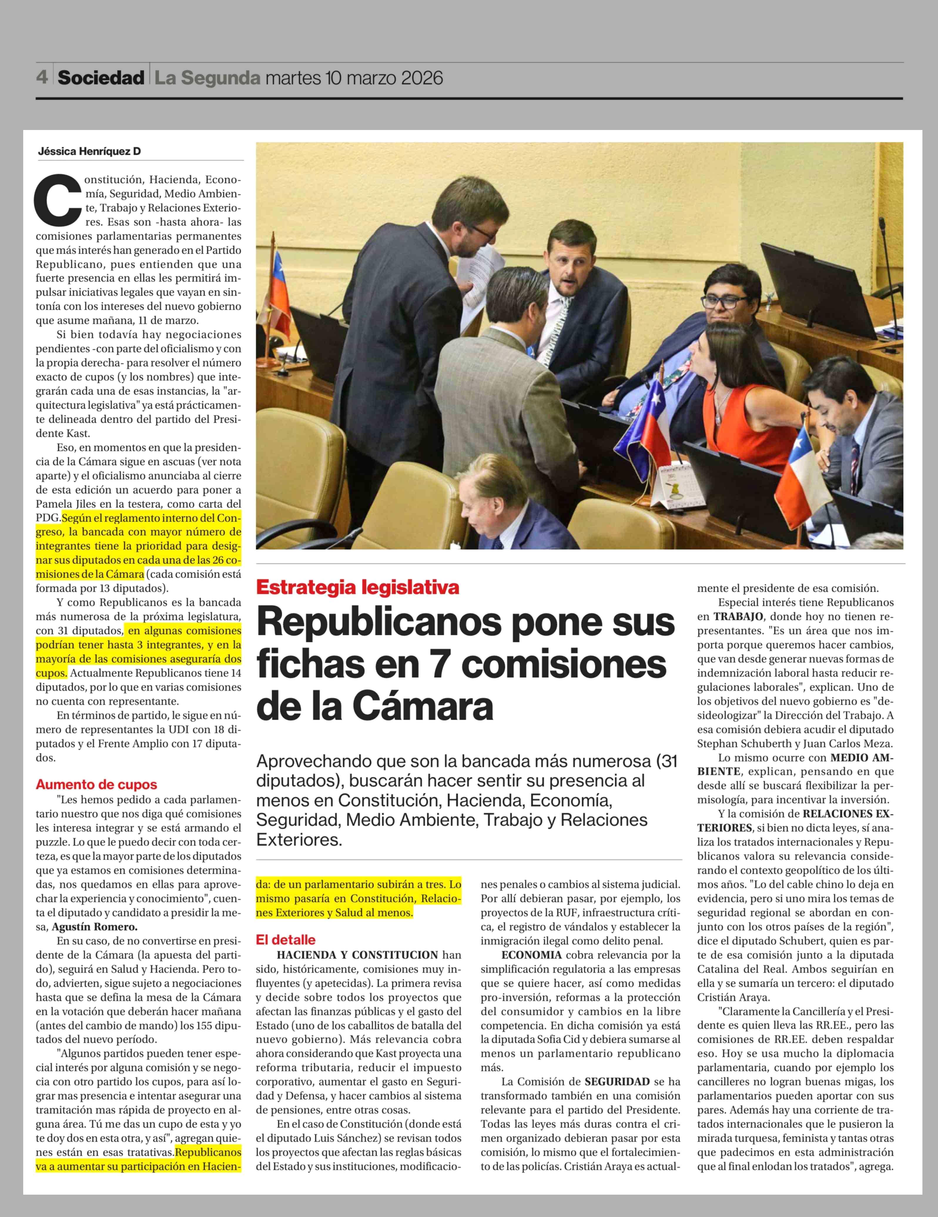 Republicanos pone sus fichas en 7 comisiones de la Cámara 10-03-2026 La Segunda |