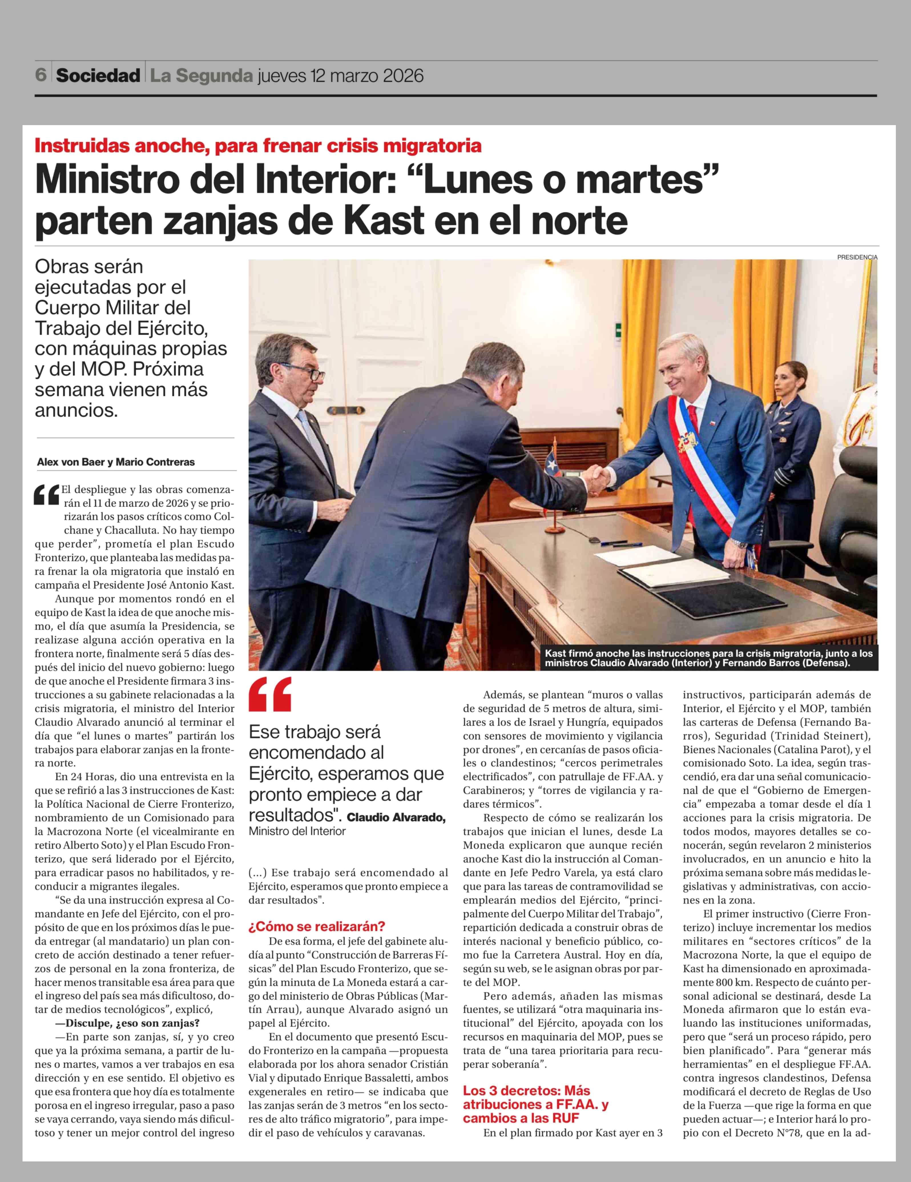 Título: Ministro del Interior: "Lunes o martes" parten zanjas de Kast en el norte